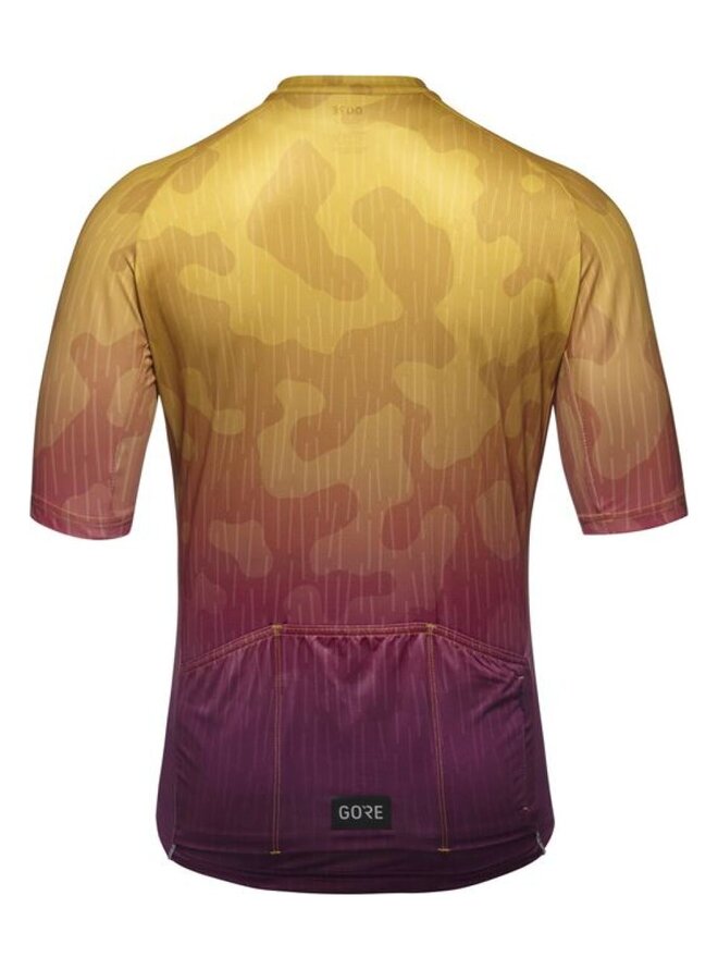 Univerzální dres GORE Rain Camo je navržen pro každodenní vyjížďky na silnici i mimo ni. Podrobnosti, materiály a údržba Dres vyroben ze 100% recyklovaných materiálů Rychleschnoucí a příjemný materiál na kůži Přiléhavý límec Osvědčený cyklistický střih s prodlouženými rukávy a zadním dílem dresu Tři zadní kapsy s integrovanou bezpečnou kapsou na zip na klíče nebo cennosti Pružný spodní lem Zip po celé délce dresu s pojistkou Reflexní detaily Hmotnost: 130g Materiál: 100% polyester (recyklovaný) Dres je možné prát v pračce na max 40 stupňů (jemný program), nežehlit, nebělit, nepoužívat aviváže ani sušičku na prádlo.Detaily