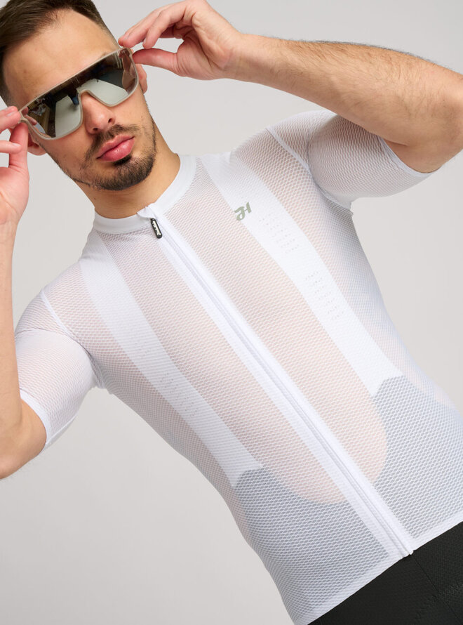 Aerolite je ideální dres pro teplé až horké podmínky. Je rychleschnoucí a jeho elastická struktura se dokonale přizpůsobí pohybu, abyste se cítili volně a bez omezení. Je kombinován ze dvou síťovinových látek, které zajišťují vysoké odvádění tepla a vlhkosti. Přední strana dresu poskytuje mimořádnou ventilaci a maximální chlazení, zatímco zadní je trochu pevnější, ale stále vysoce prodyšná a spolehlivě drží tvar iu plných zadních kapes. Nechybí mu ani skrytá kapsa na zip, přední zip s ochranným překrytím krku a protiskluzové zakončení na zadní straně dresu. Je vybaven diskrétními reflexními detaily a vše dotváří čistý design.