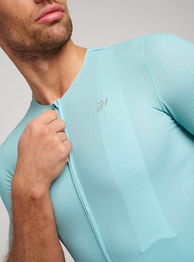 Díky naší nové látce se vydušnou texturou účinně odvádí vlhkost i při vysokém výkonu. Přizpůsobí se postavě, pevně drží tvar a potlačuje nedostatky. Má vylepšený střih límce a zip s ochranou krku, tři zadní kapsy se skrytou kapsou na zip a protiskluzové zakončení na zadní straně dresu. Minimalistický design podtrhuje nadčasovost dresu.