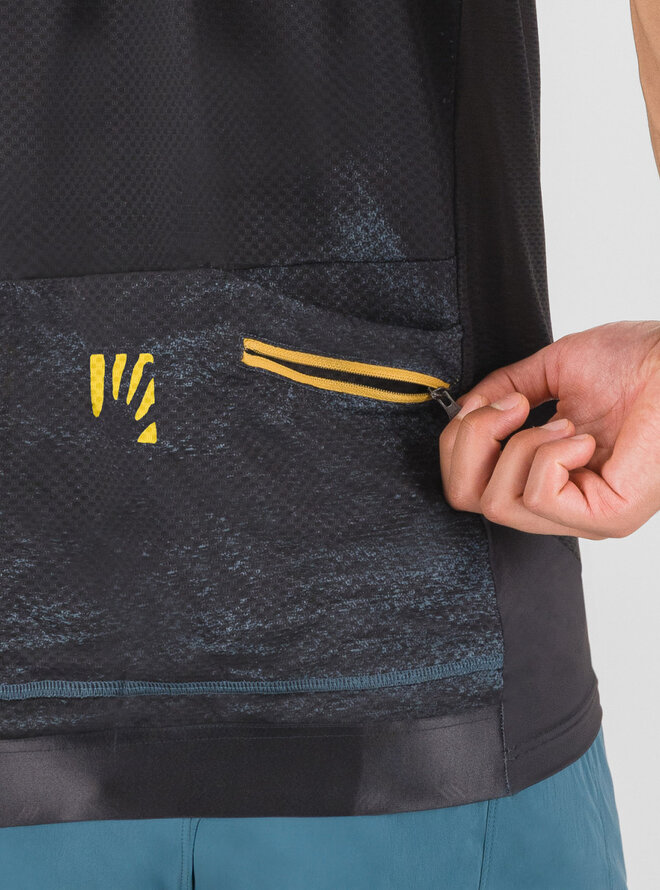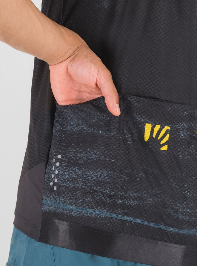 Letní MTB dresKarpos Green Fire je vyroben z dvojice funkčních materiálů, které poskytují optimální pohodlí i při celodenním ježdění. Na přední straně je měkký, elastický materiál, který zajišťuje přiléhavost. Lepší odvod potu od pokožky (i při nošení batohu) zajišťuje perforovaný materiál na bocích, rukávech a zádech. Pro uložení všech potřebných věcí je dres vybaven 3 prostornými kapsami a menší vnitřní kapsičkou.