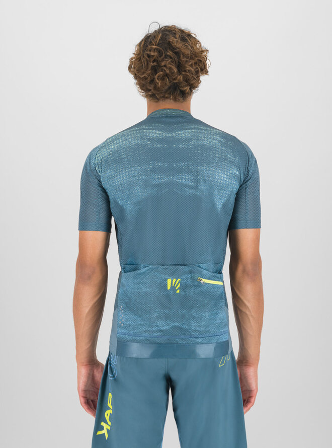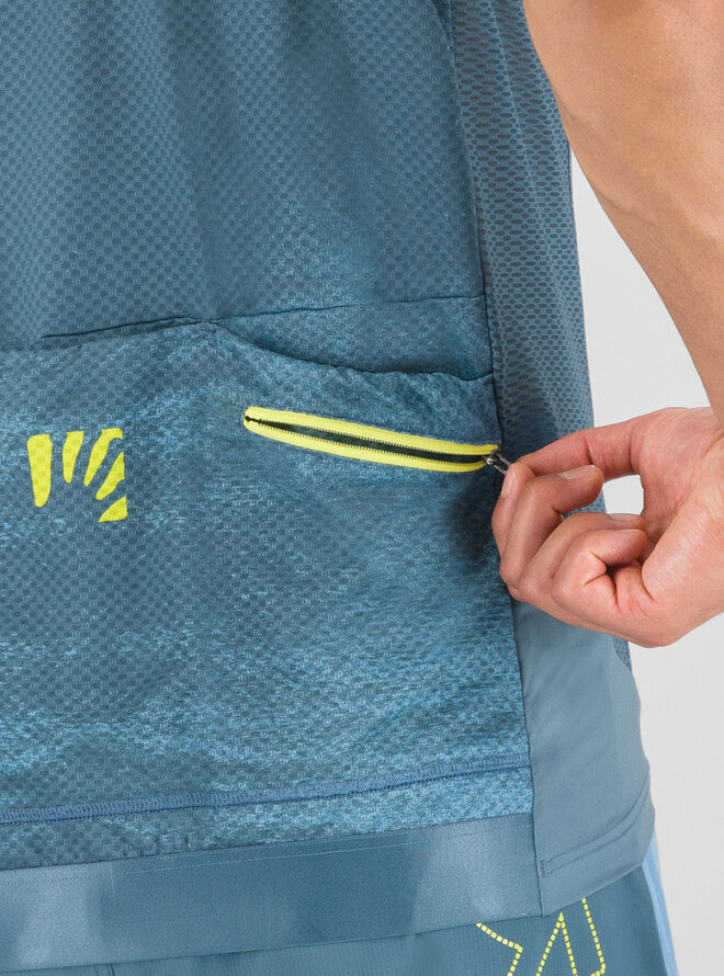 Letní MTB dresKarpos Green Fire je vyroben z dvojice funkčních materiálů, které poskytují optimální pohodlí i při celodenním ježdění. Na přední straně je měkký, elastický materiál, který zajišťuje přiléhavost. Lepší odvod potu od pokožky (i při nošení batohu) zajišťuje perforovaný materiál na bocích, rukávech a zádech. Pro uložení všech potřebných věcí je dres vybaven 3 prostornými kapsami a menší vnitřní kapsičkou.