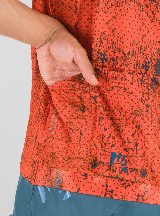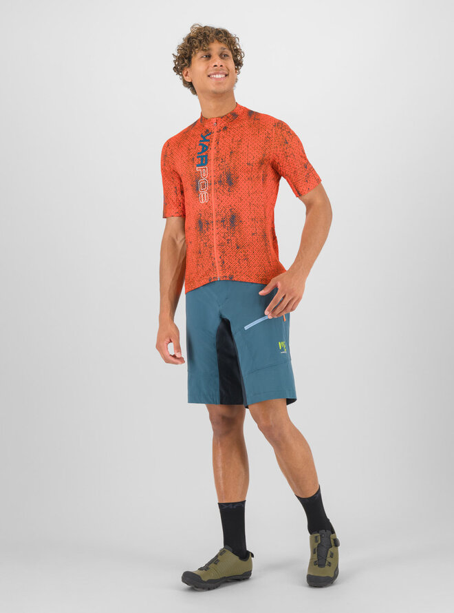Letní MTB dresKarpos Val Viola je vyroben z dvojice funkčních materiálů, které poskytují optimální pohodlí i při celodenním ježdění. Na přední straně je měkký, elastický materiál, který zajišťuje přiléhavost. Lepší odvod potu od pokožky (i při nošení batohu) zajišťuje perforovaný materiál na bocích, rukávech a zádech. Pro uložení všech potřebných věcí je dres vybaven 3 prostornými kapsami a menší vnitřní kapsičkou.