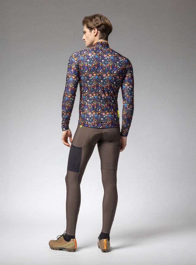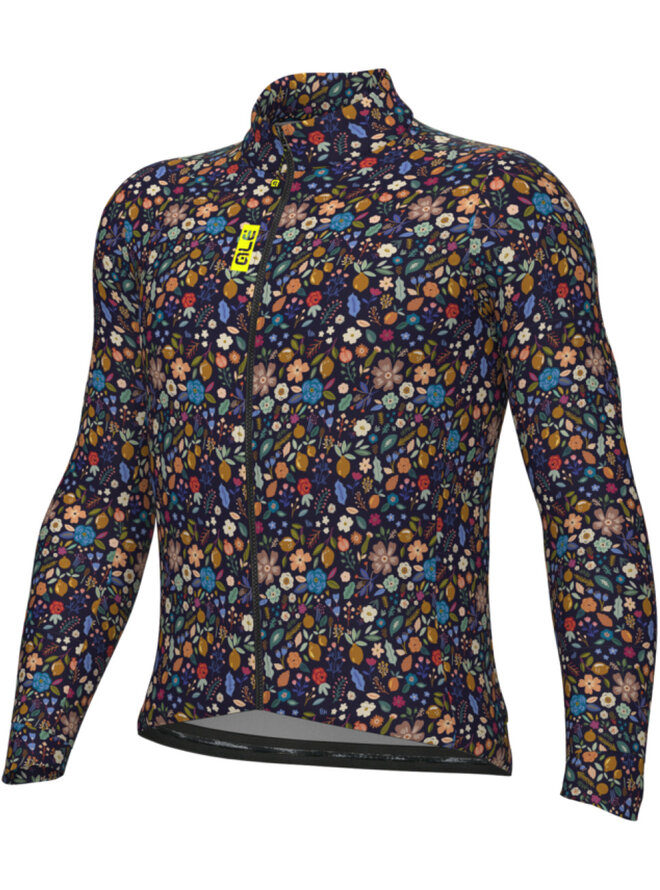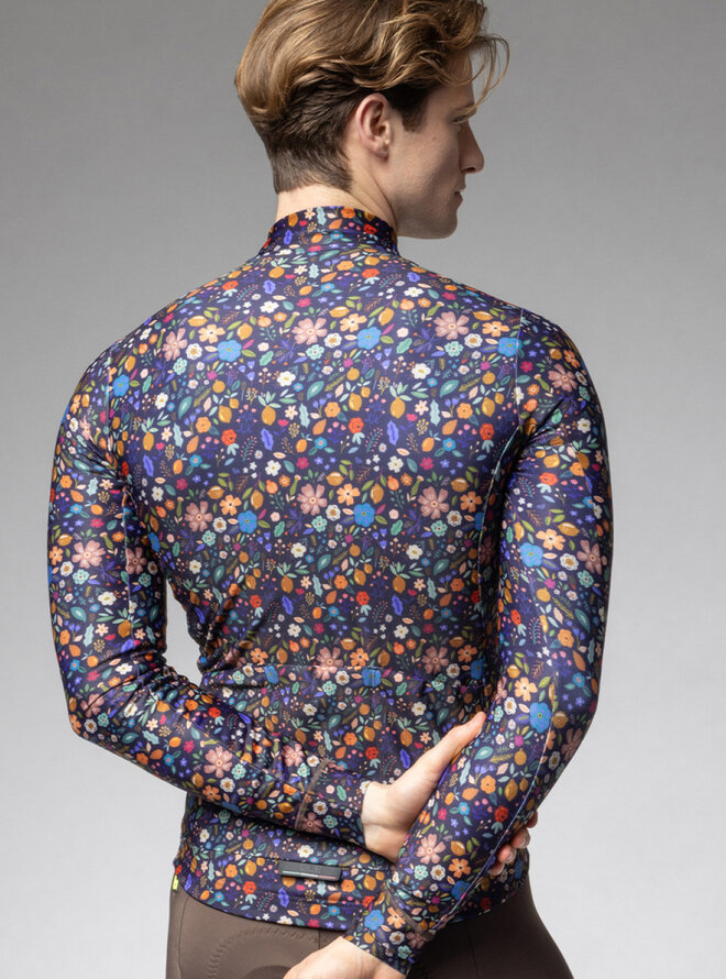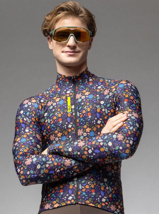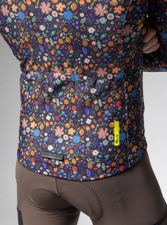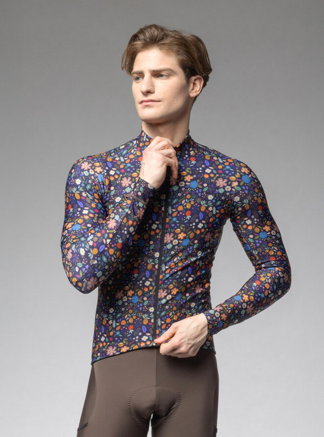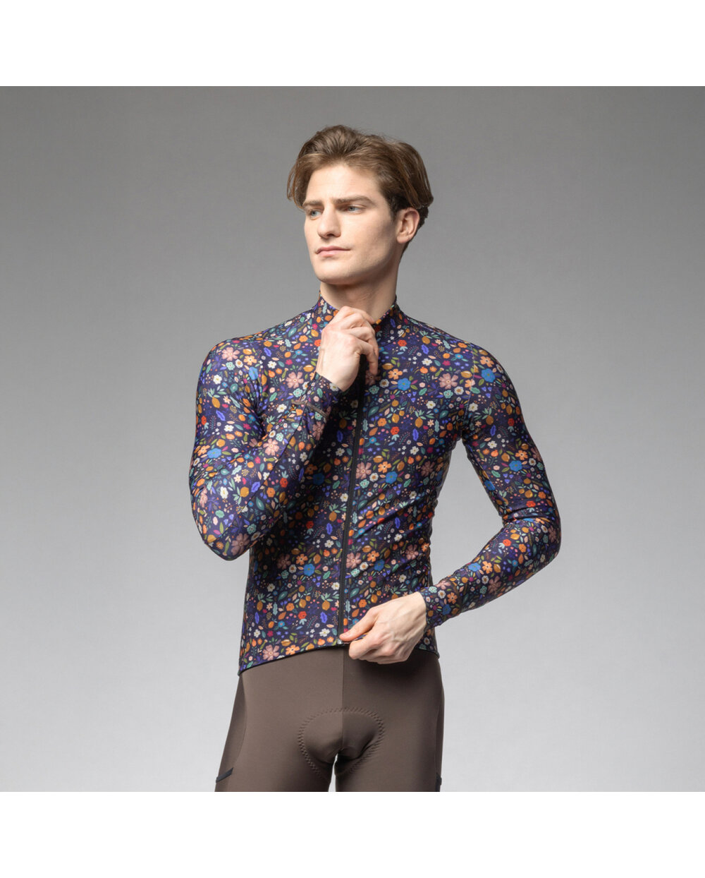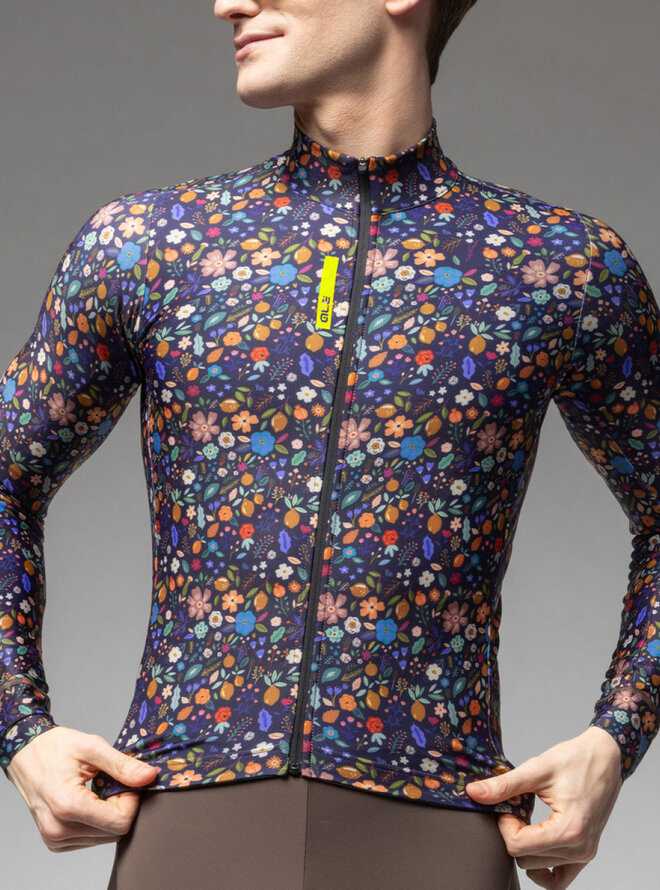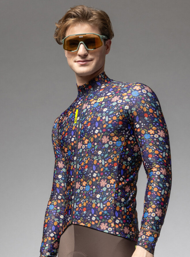 Cyklistický dres s dlouhým rukávem zimní - PRAGMA FLOWERY - černá/vícebarevná