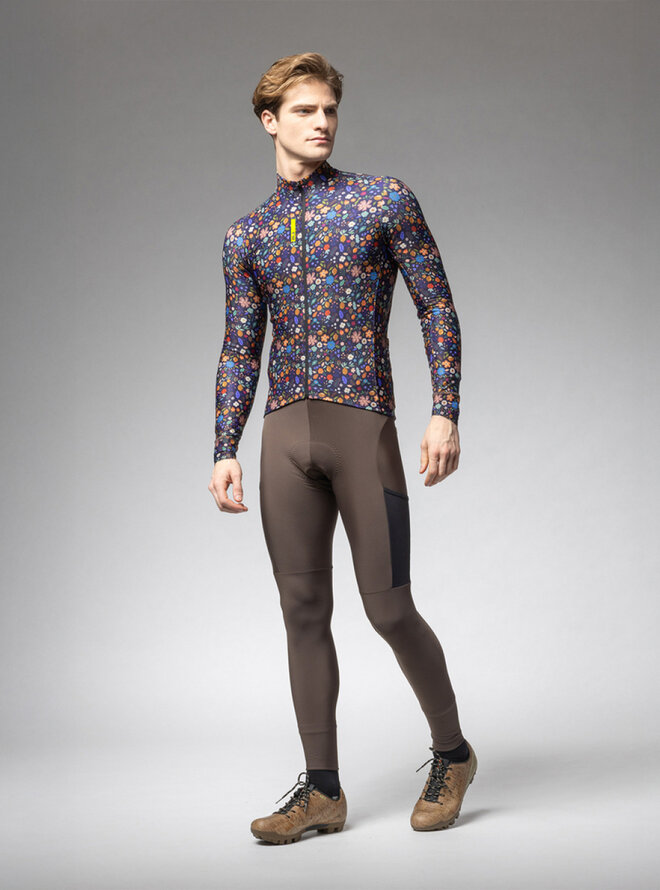 Dres PRAGMA FLOWERY v kombinaci s cyklistickými kalhotami je ekologickou volbou vyrobenou z recyklovaných materiálů s certifikací Global Recycle Standard (GRS). Dres je zhotoven z materiálů s nízkým dopadem na životní prostředí, je prodyšný a elastický, což omezuje ztrátu tepla a pomáhá udržet stabilní tělesnou teplotu i v mírně zimních podmínkách. Kalhoty z ekologických tkanin poskytují ochranu před chladem, zároveň jsou vysoce prodyšné. Inovovaná vložka je antishock, prodyšná a samozřejmě také z recyklovaného materiálu.
