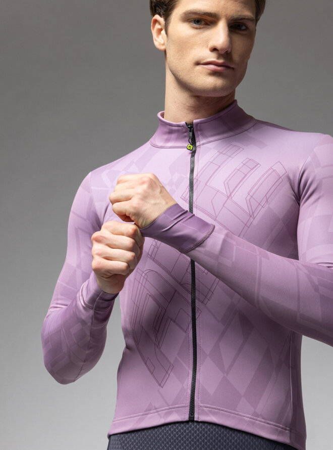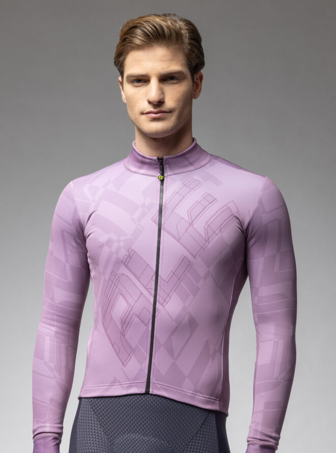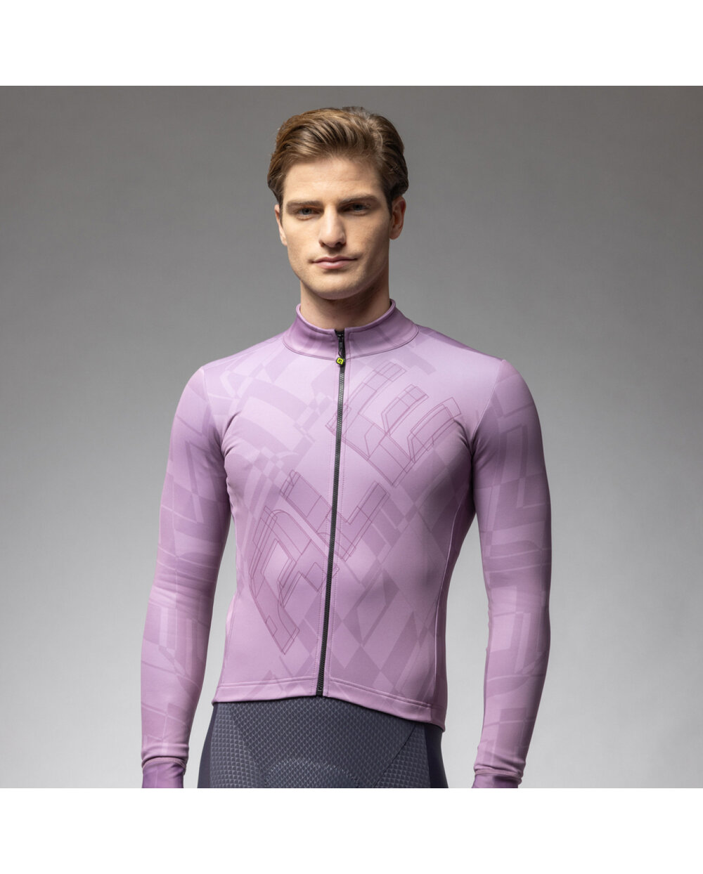 Cyklistický dres s dlouhým rukávem zimní - PRAGMA SCHEMA - fialová
