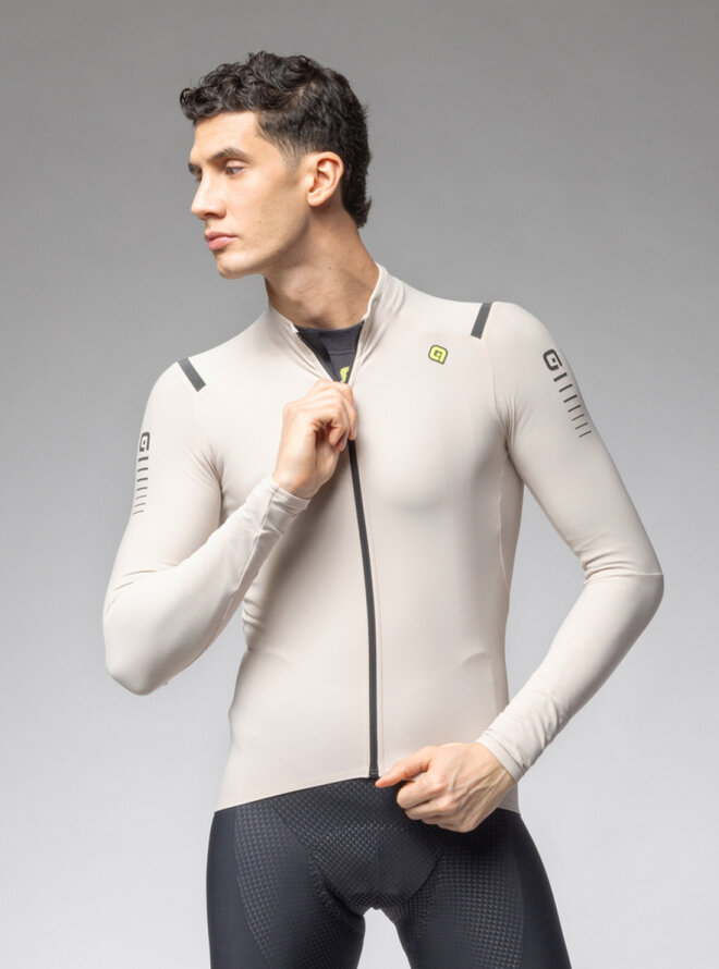 Cyklistický dres s dlouhým rukávem zimní - WARM RACE - ivory