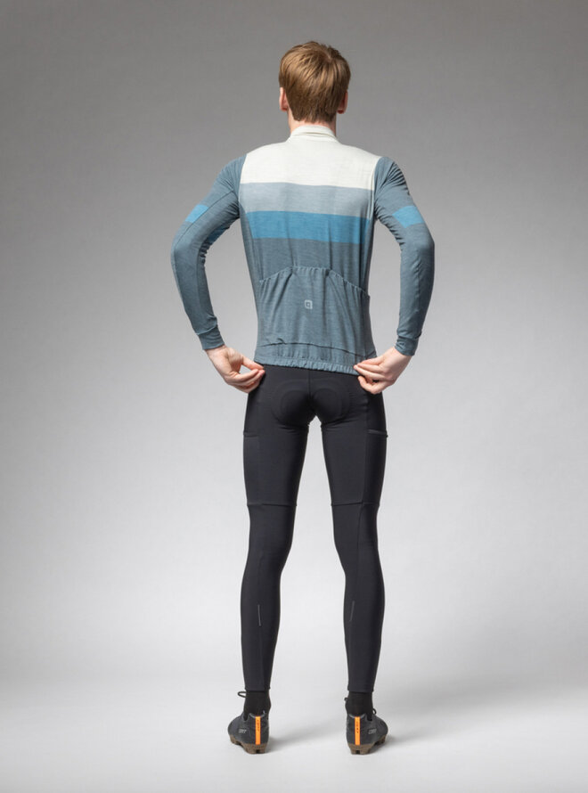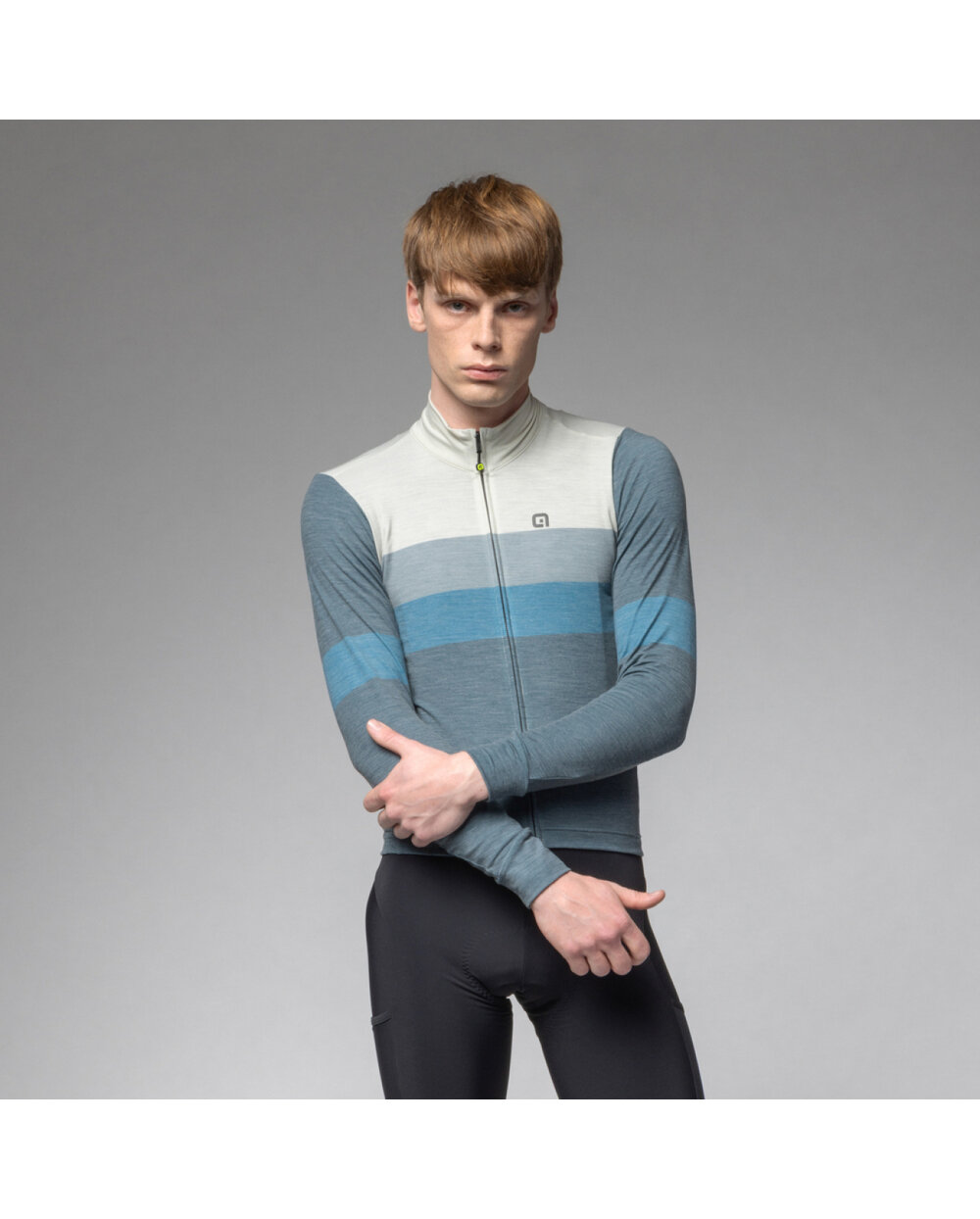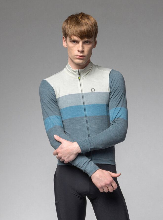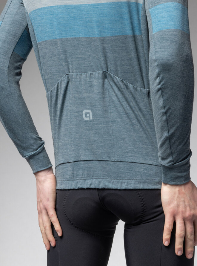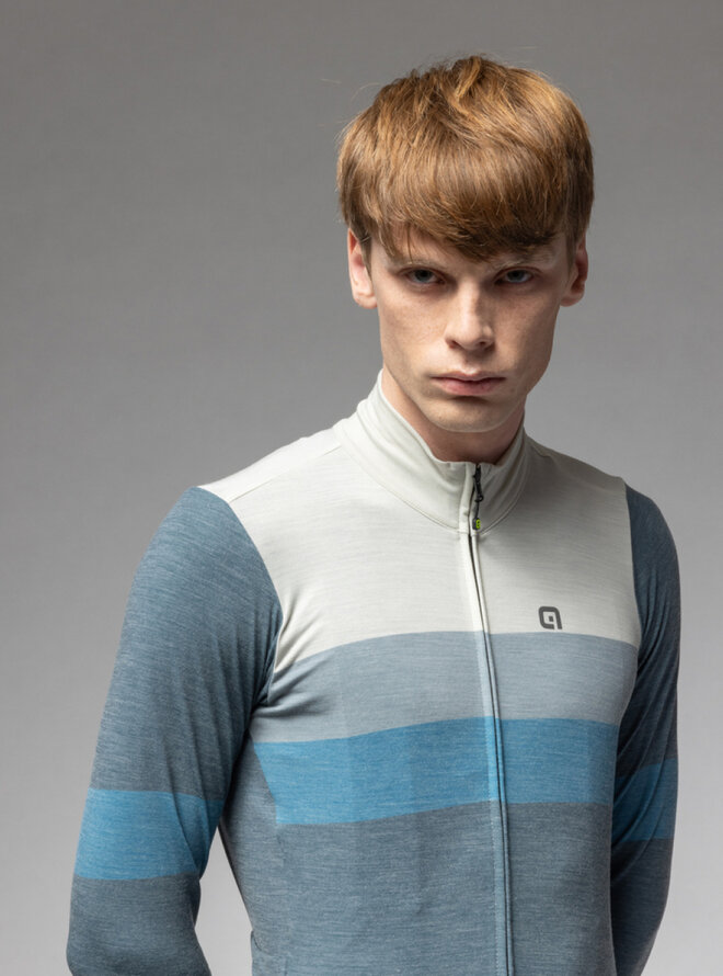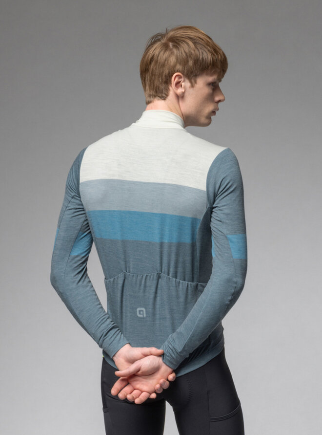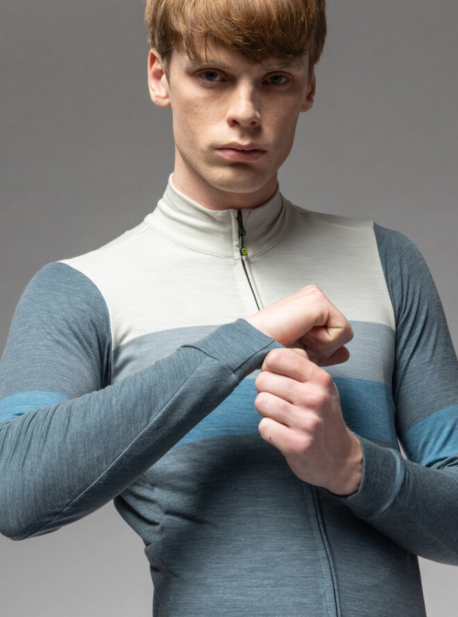 Cyklistický dres s dlouhým rukávem zimní - WOOL LINE - modrá/šedá