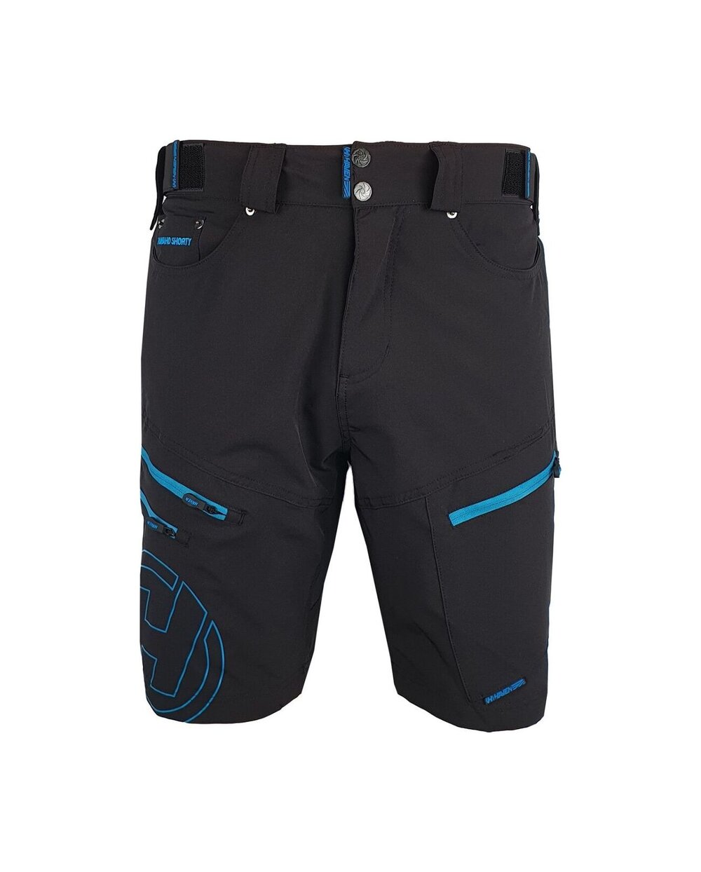 Propracované pánské kraťasy klasického střihu v čistém dvoubarevném designu s pohodlnými vnitřními vyjímatelnými kraťasy s cyklovložkou. Zadní část s pružným panelem zvyšuje pohodlí a kalhoty nesjíždí dolů. Možnost efektivního odvětrávání na bocích, zip je opatřen sítovou podšívkou. Samozřejmostí je voduodpudivá rychleschnoucí povrchová úprava materiálu proti nečistotám jako u ostatních modelů (neplést s vodotěsností, výrobek není nepromokavý a nemá udaný vodní sloupec). Teflonová povrchová úprava slouží pro vylepšení vlastností materiálu, viz. výše uvedené nikoliv jako membrána. Mnoho praktických detailů jako voděodolná kapsa, MP3 kapsa, odvětrávání atd. Výborně se hodí k volným dresům NAVAHO v mnoha barevných provedeníchDetaily
