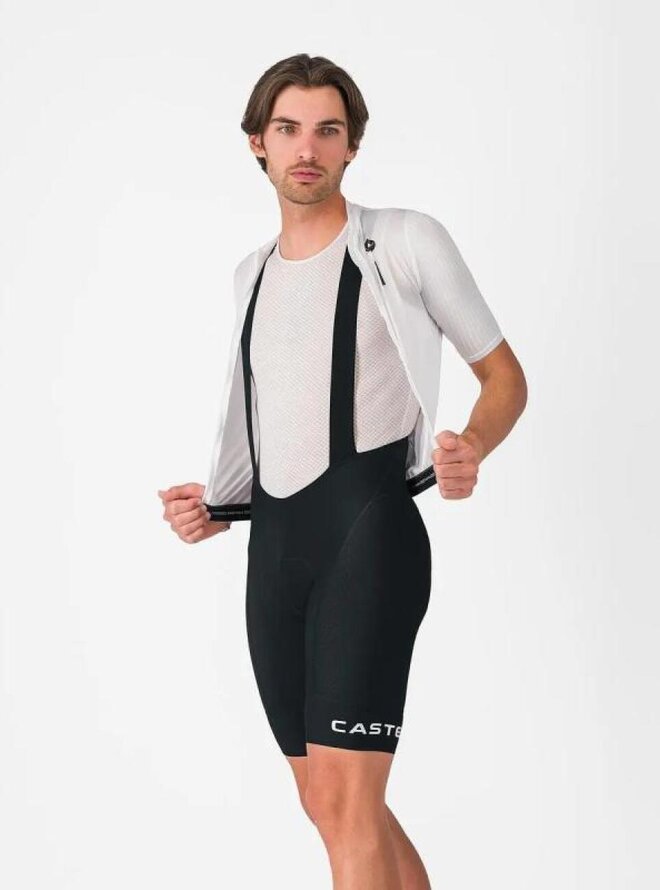 Tyto krátké kalhoty jsme vyvinuli tak, abychom nabídli maximum technologií z naší nejvyšší řady pro profesionály za přijatelnou cenu. Jsou to skvělé pohodlné výkonnostní krátké kalhoty, které zvládnou i víkendové závody. Větší část kalhot je vyrobena z texturovaného materiálu Vortex. Použili jsme široké, elastické ukončení kalhot s integrovaným silikonem, díky čemuž kalhoty bezpečně a pohodlně sedí. Vložka KISS Air2 je téměř tak pohodlná, jako naše top vložka, ale za mnohem příznivější cenu. Vylepšili jsme šle: na zádech jsou síťovinové kvůli prodyšnosti, přední část šle je z lehkého elastického materiálu, díky čemuž jsou pohodlné i při celodenním nošení. Neuchopitelným prvkem, který oceníte nejvíce je naše schopnost zkombinovat to do střihu, který dokonale sedí a to díky vývojovému týmu Castelli.