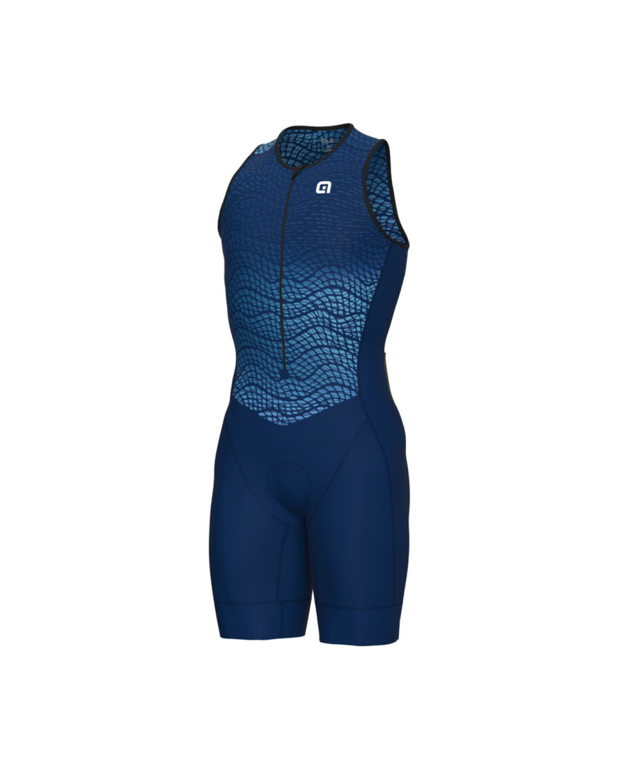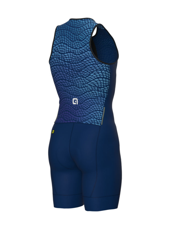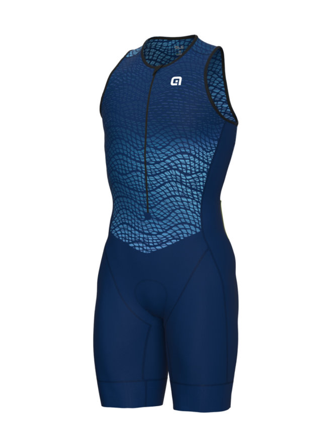 TRIATLONOVÁ KOMBINÉZA NAVRŽENA PŘÍMO TRIATLONISTY. Triatlonová kombinéza bez rukávů ALÉ DIVE TRIATHLON je ušita z voděodpudivé látky, která se ve vodě zrychluje. Zadní panely a kapsy jsou vyrobeny z naší tkaniny Mesh Dragon, která je velmi prodyšná. Zadní kapsy pak mohou uchovat vaše energetické tyčinky pro cyklistickou a běžeckou část závodu.- Vhodné pro teploty od 10° do 30°C.