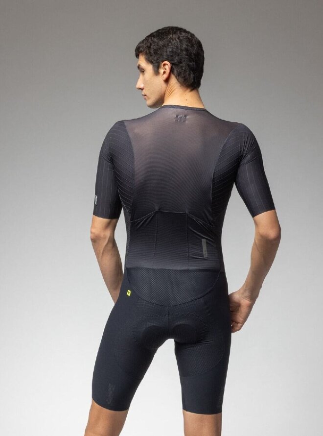 Na přední straně má kombinéza R-EV1 Eagle plně rozepínací zip, který umožní pohodlné obléknutí. Zadní strana je vybavena dvojící kapes, kam schováte vše, co budete při Vašem závodním nasazení potřebovat. Kombinéza byla vyvinuta s důrazem na podpoření výkonu, proto je opatřena speciální 3D strukturou , která poskytuje vynikající oporu Vašim svalům během výkonu díky perfektně vyladěné kompresi. Její aerodynamické vlastnosti jsou tím nejlepším, co můžete ve světě cyklistiky nalézt, kombinace ergonomického střihu, rukávů bez lemů s aerodynamickými doplňky dělá z kombinézy R-EV1 Eagle opravdovou zbraň proti času.
