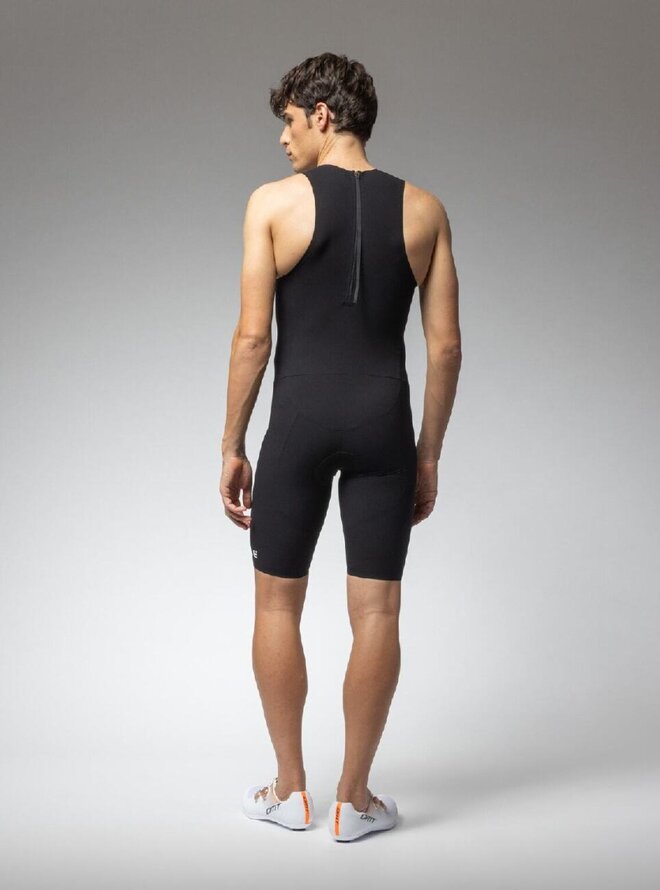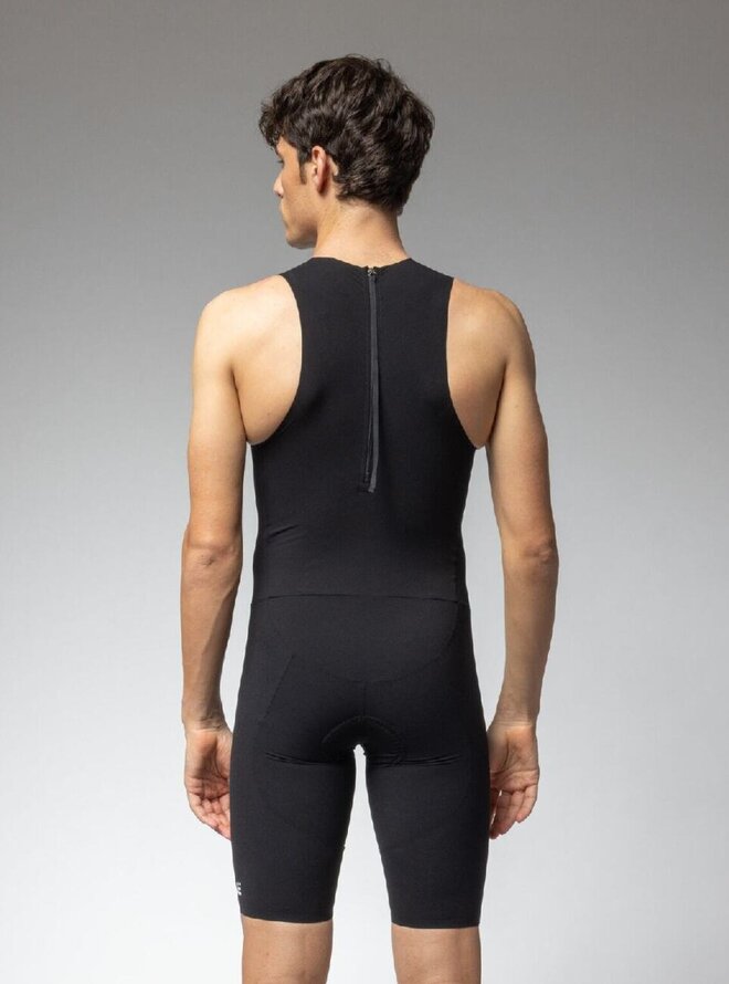 Zadní zip s protiskluzovým táhlem umožňuje rychlé, jisté a intuitivní převlékání v depu – přesně tehdy, kdy záleží na každé vteřině.