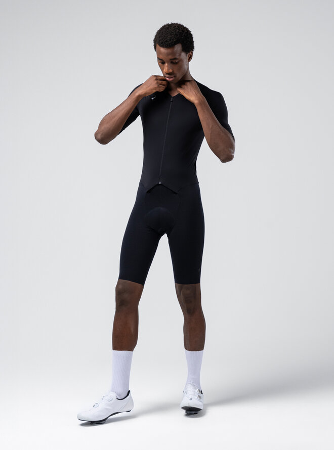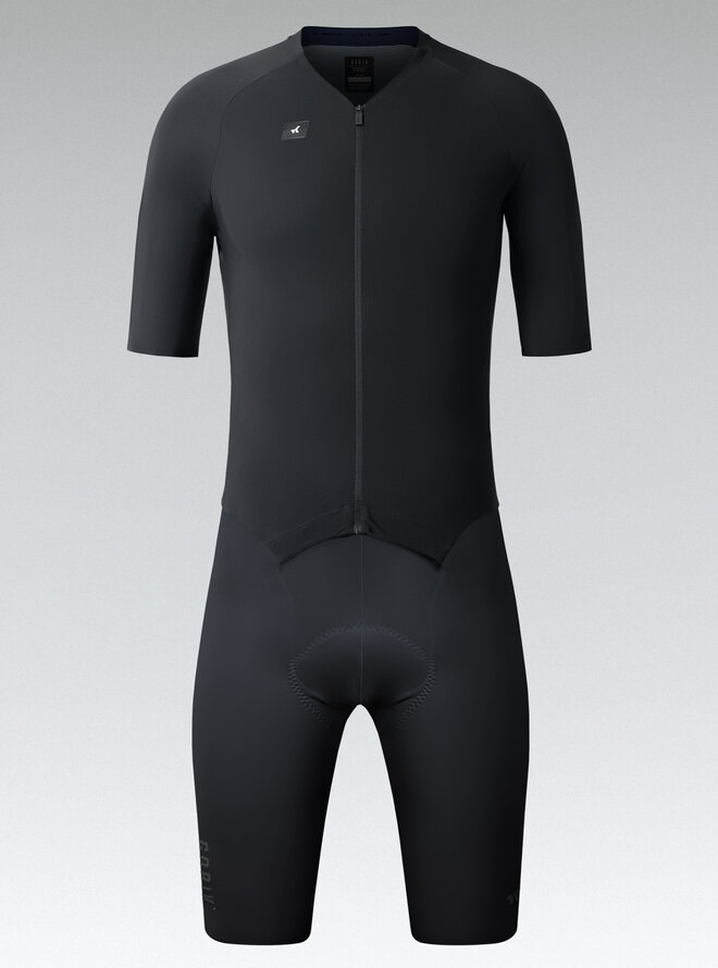 Celotělový high-performance overal, který kombinuje aerodynamiku, lehkost a komfort v kompletně propracovaném oděvu, z technického i estetického hlediska.
