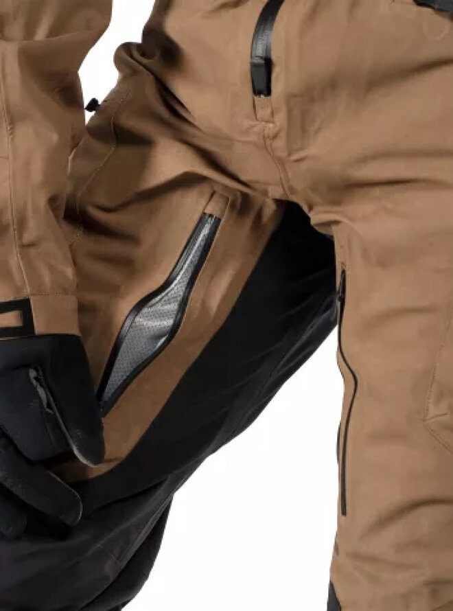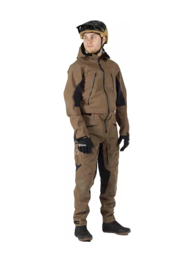 Inspirovaný sněžnými skútry - Systém vnitřního popruhu vám umožňuje nosit monosuit s bundou nahoru nebo spuštěným kolem pasu. Ideální, když nesedíte na kole. YKK Aquaguard Zippers a nastavitelné kalhoty End zajišťují přesné přizpůsobení - nic se nedostane dovnitř.