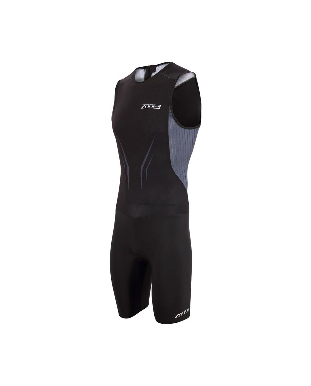 Pánský triatlonový triatlonový oblek bez rukávů Aeroforce-X od Zone3 je vysoce výkonný triatlonový oblek bez rukávů určený pro sportovce, kteří chtějí maximální výkon v každé disciplíně – plavání, cyklistice a běhu. Tento aerodynamický design, vytvořený ve spolupráci se specialisty na aerodynamiku, byl testován v aerodynamických tunelech a výkonnostních centrech, aby poskytoval nejnižší možný odpor a vyšší rychlost na kole, aniž by byl obětován komfort při plavání a běhu. Triatlonová kombinéza využívá několik vysoce kvalitních materiálů, které dohromady vytvářejí optimální rovnováhu mezi aerodynamikou, prodyšností, pohodlím a krytím. Panely s technologií Aeroforce-X minimalizují odpor vzduchu a mají vodoodpudivou nano úpravu, zatímco měkké a rychleschnoucí tkaniny na přední a zadní straně poskytují pohodlí a účinný odvod vlhkosti. Stélka Tri‑Lite je navržena speciálně pro triatlon - poskytuje pohodlí při jízdě na kole, rychle schne a neomezuje při plavání ani běhu. Laserem vyřezávané otvory a integrované silikonové úchyty na nožičkách zajišťují pevné usazení bez klouzání a zlepšují aerodynamický profil.Detaily