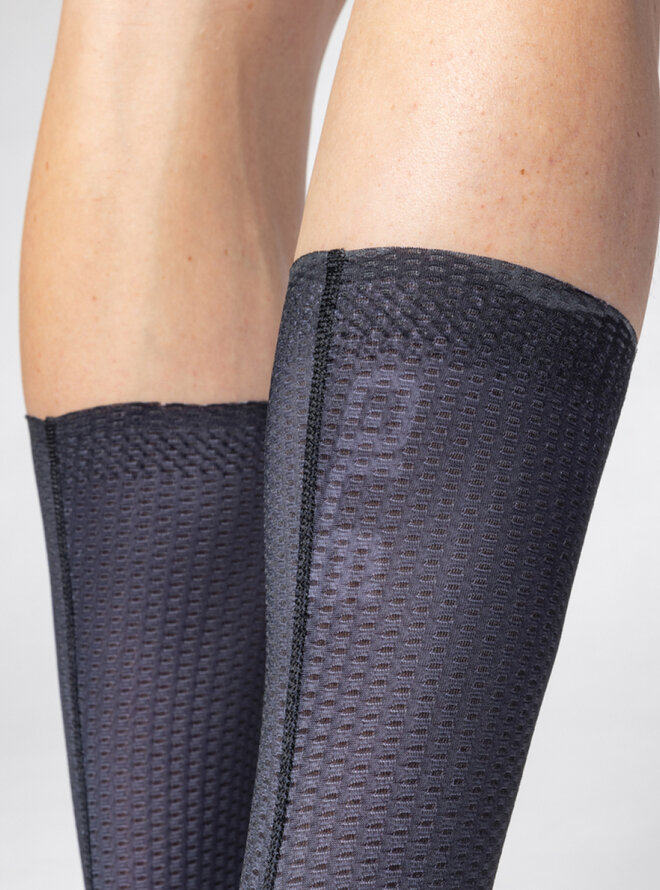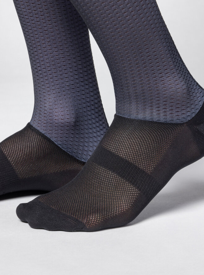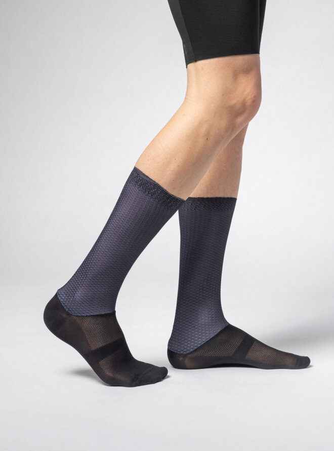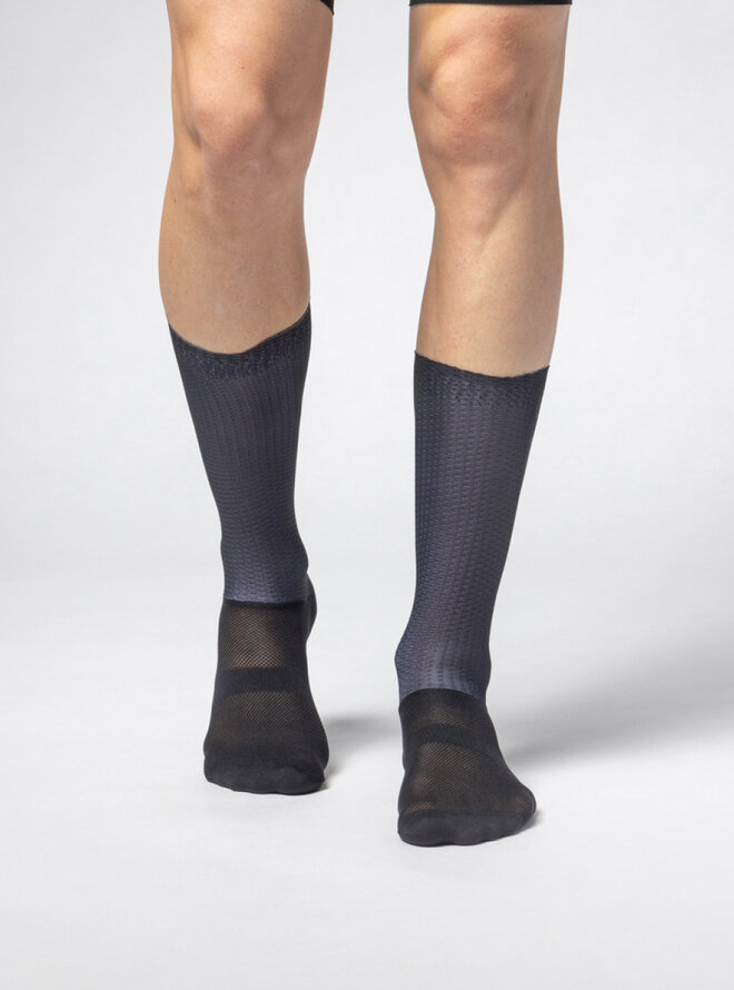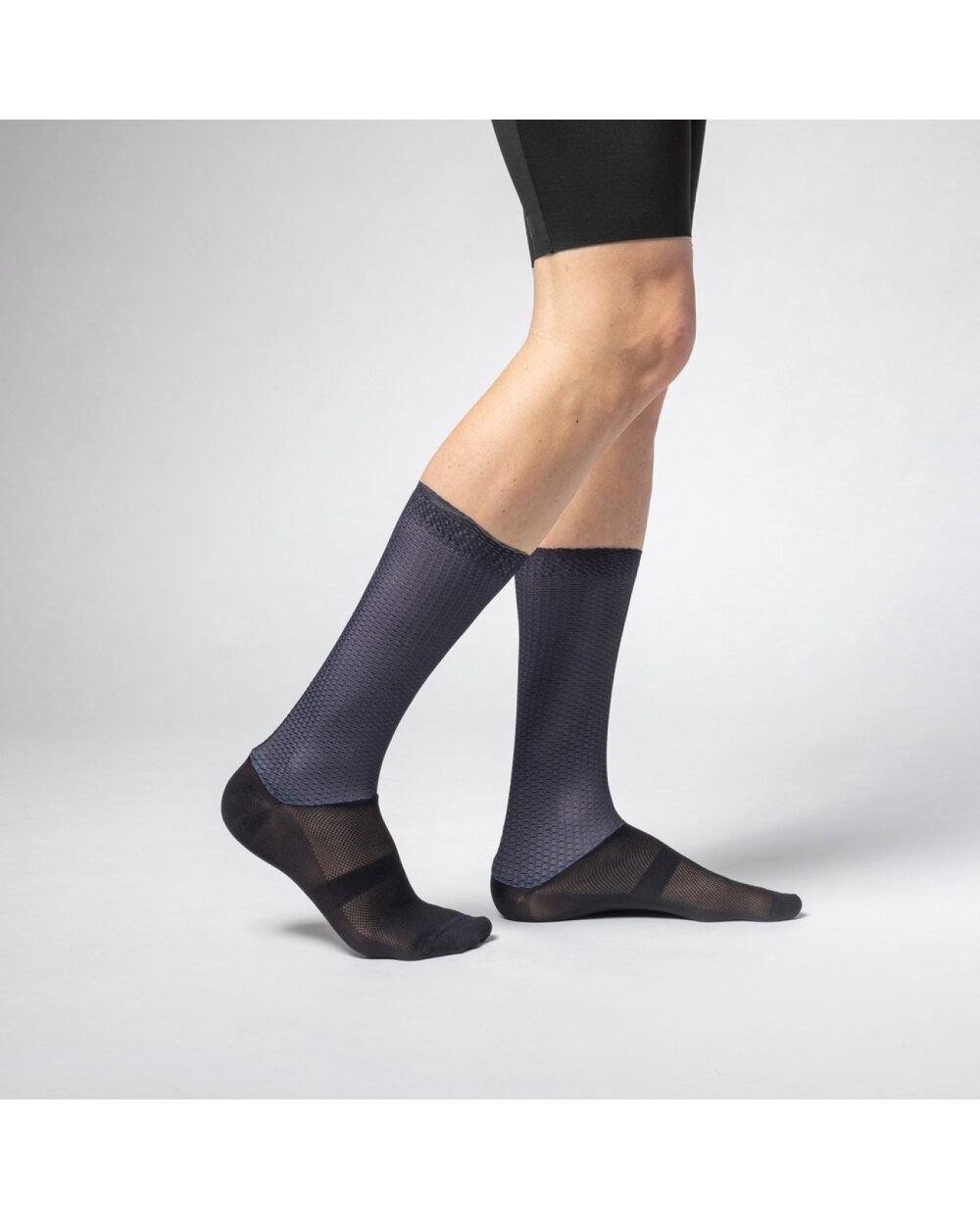 Aerodynamické ponožky TYPHOON jsou perfektní volbou pro dosažení toho nejlepšího času. Horní část vysoká 18 cm je vyrobena z materiálu Aero Cell s hexagonální strukturou, která zajišťuje minimální odpor vzduchu. Lem je zakončen technologií Raw Cut se stabilizačním systémem Grip Dots, který udrží ponožky pevně na místě. Spodní část je z velmi prodyšného materiálu pro podporu ventilace a odvodu vlhkosti.