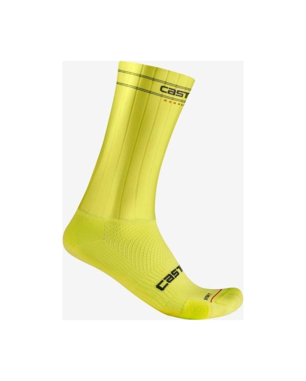 Na trhu je mnoho ponožek s přívlastkem "aero". Ponožky Fast Feet od Castelli ale prošly vývojem a testováním, které potvrzují platnost takového atributu. Těch několik modelů, které prošly nějakým testováním, pravděpodobně prošlo nepohyblivým statickým testem, protože je to jednodušší. Noha je ale neustále v pohybu, a tak jsme vymysleli zařízení, které napodobuje pohyb nohy a chodidla. Výsledky ověřujeme testováním na jezdcích. Tyto ponožky vám mohou ušetřit 2 watty při rychlosti 50 km/h. Nejnovější verze má vylepšenou manžetu pro větší pohodlí a aerodynamiku