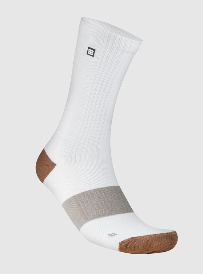 Sportful Supergiara Gravel Socksjsou navrženy pro jezdce, kteří jezdí tam, kde končí asfalt a začíná dobrodružství. Nejsou to jen další cyklistické ponožky - jsou nezbytnou součástí, která se stará o komfort, stabilitu a výkon chodidel s důrazem na každý detail. Jízda na šotolině klade na nohy specifické nároky: delší trasy, neustálá práce chodidla, různé povrchy a změny tempa. Tyto ponožky jsou přesně pro to ušité.