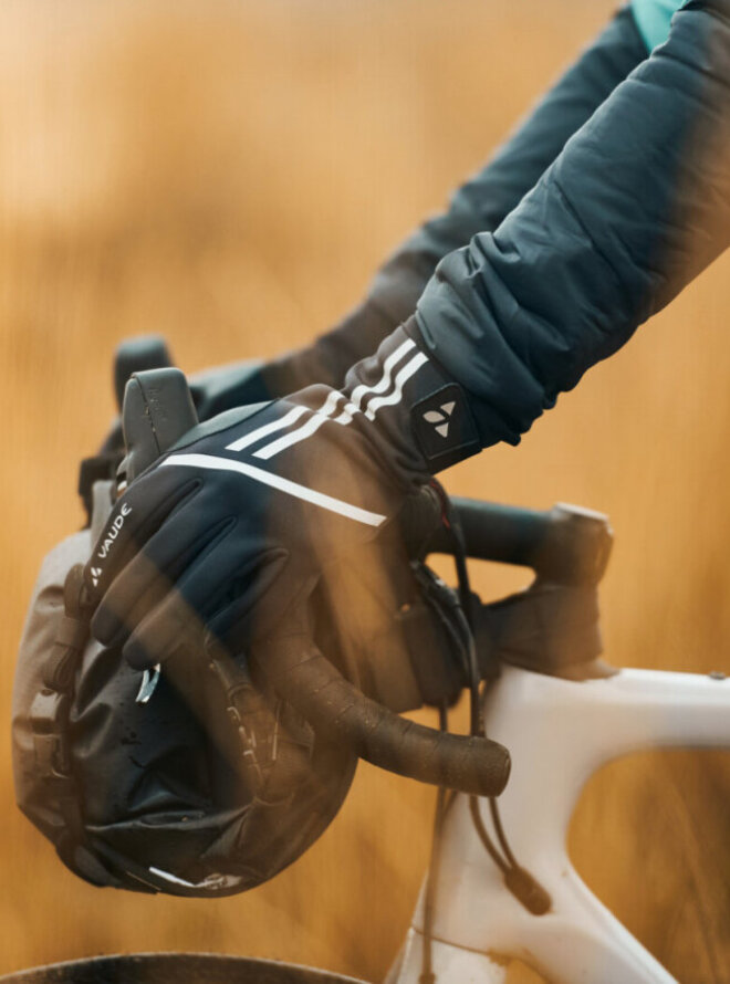 - S polstrováním na dlani dlaní a vyztuženým palcem a silikonovým tiskem pro lepší přilnavost řídítek