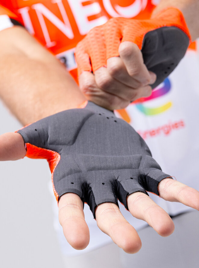 Díky bezešvé trojrozměrné struktuře a 3D dlani s exkluzivním anatomickým designem italské značky Elastic Interface® jsou tyto rukavice špičkou ve své kategorii. Podporují krevní oběh a zmírňují tlak na loketní nerv při dlouhých sezeních, zatímco perforovaná pěna s vysokou hustotou poskytuje vynikající pohodlí na řídítkách. Tato verze používá pevnou tkaninu pro super elastický a odolnější hřbet, takže je ideální i pro disciplíny, jako je šotolina. Velmi pružná a odolnější pevná vrchní tkanina. Vynikající termoregulace. 3D dlaň s technologií Elastic Interface®. Bezešvá a pružná tepelně tvarovaná anatomická konstrukce. Perforovaná pěna s vysokou hustotou. Dlaň s pokročilým úchopem. Bezešvá manžeta zpracovaná laserovým řezem. Zápěstí se silikonovým potiskem.Detaily