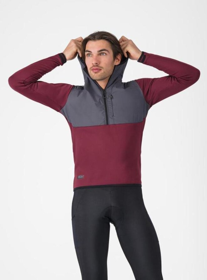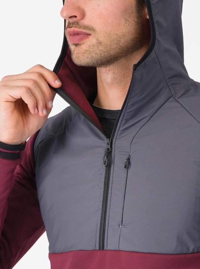 Teplá fleecová bunda s nylonovým překrytím na hrudi a kapuci určená pro cyklistiku i mimo ni.Flísová mikina s větruodolnými nylonovými panely Teplejší hlavní materiál Castelli Warmer z vícevrstvého 100% polyesterového fleecu s hmotností 195 g Kapuce, horní část hrudníku a překrytí ramen z větruodolného japonského ripstopového tkaného nylonového materiálu s DWR úpravou Poloviční YKK® zip Náprsní kapsa Velikosti: XS-39XL Rozsah teploty: 100 g Teplota:0 00 °C 421 vínová, 414 tmavě modrá, 245 moka, 353 olivově zelená Střih: trail Vodotěsný: žádný Odolnost proti větru: přední