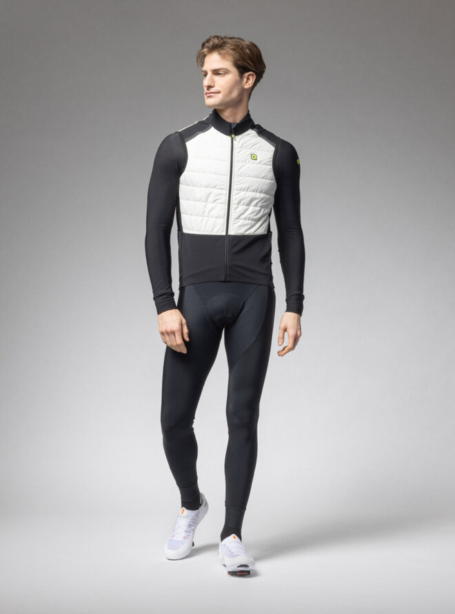 Cyklistická vesta ALÉ CARGO VEST představuje jeden z nejuniverzálnějších doplňků cyklistického šatníku, ale může se také stát stylovým doplňkem na jakoukoliv příležitost.Vysoce izolační a přitom velmi malý objem vesty CARGO chrání jezdce během chladnějších období, aniž by přidával na objemu. Díky prošívané látce Primaloft® na přední a zadní části je vesta CARGO velmi záhřevná, pohodlná a vhodná také do vlhkého počasí. Vesta má ve spodní části fixační panel, který drží oblečení na svém místě a zároveň udržuje dobré aerodynamické vlastnosti. Boční panely z česaného fleecu pak přidávají nejen izolaci, ale také pružnost pro optimální svobodu pohybu.