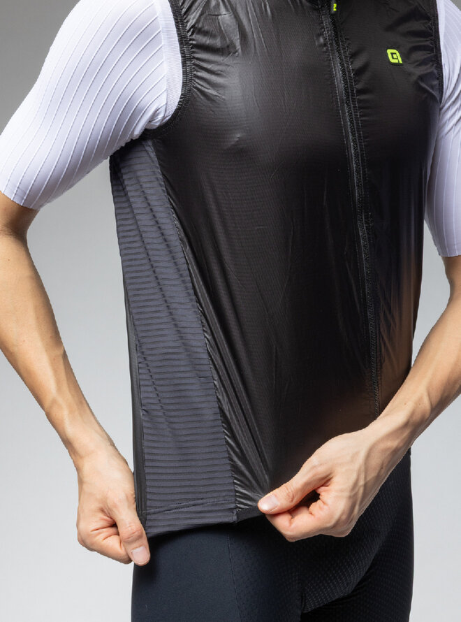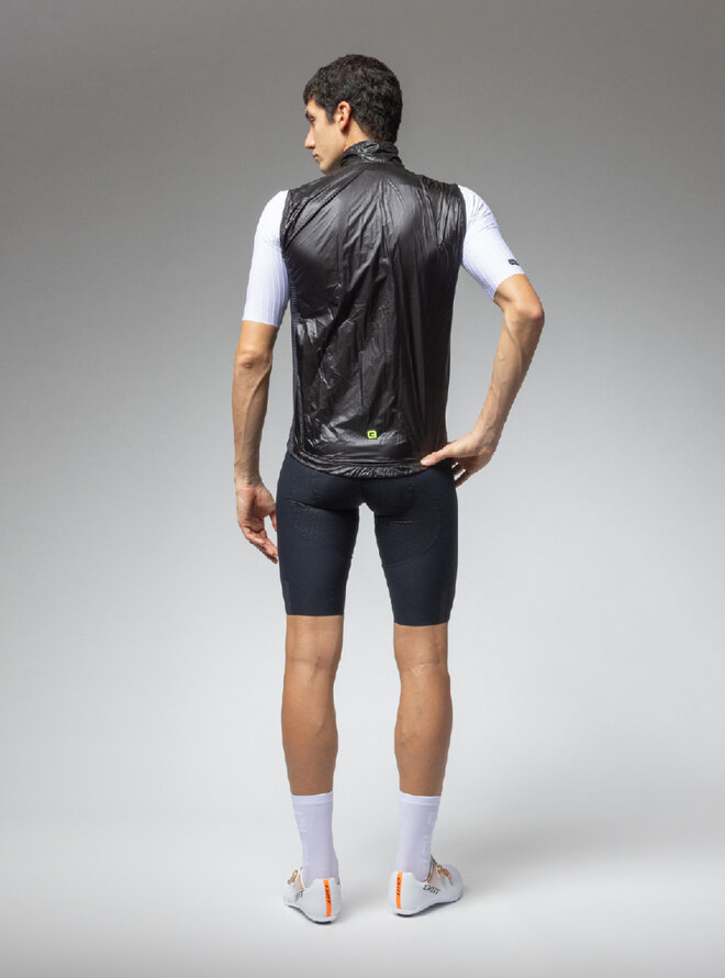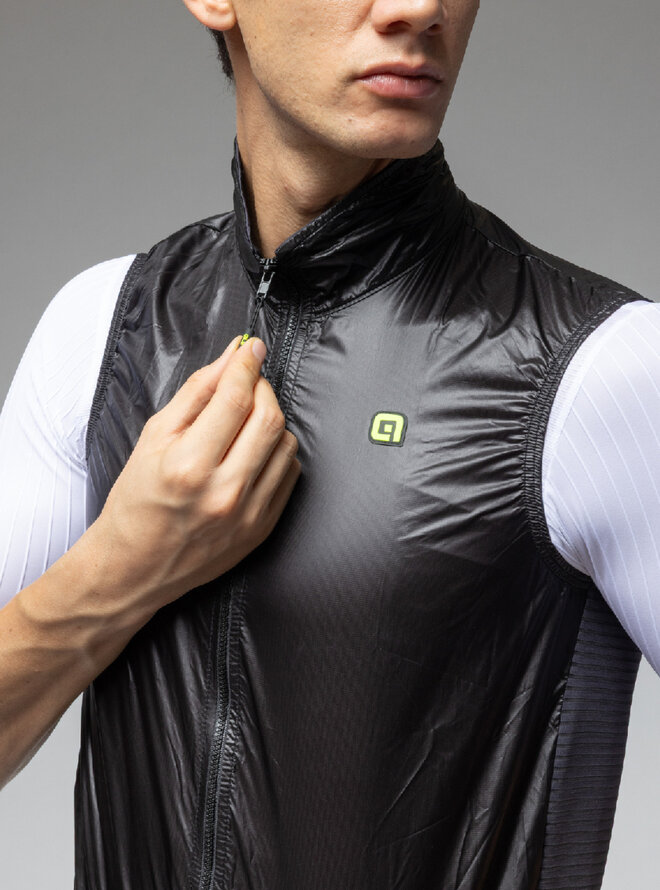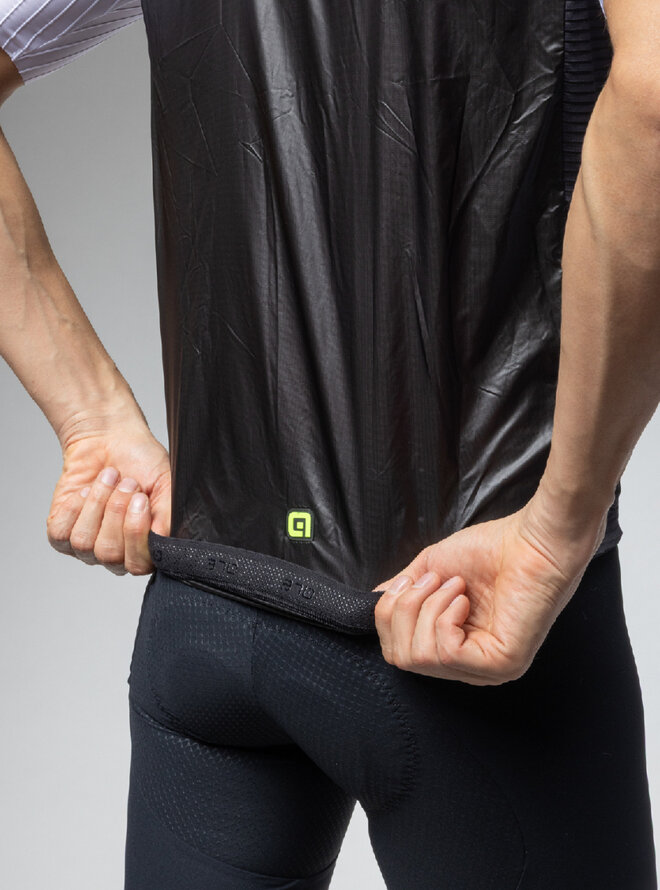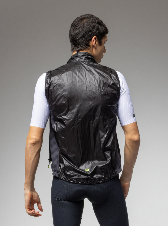 LEHKÁ A KOMPAKTNÍ. Vesta Light Pack Alé je určena k pohotovostnímu nošení do zadní kapsy dresu. Sbalitelná větrovka vyrobená z mimořádně lehkého materiálu, který poskytuje ochrannou vrstvu, a přitom je téměř neznatelný. Lze ji nosit v létě přes dres i v chladnějších obdobích přes bundu. Zadní část z prodyšné superlehké síťoviny pomáhá odvádět vlhkost. Síťovina uvnitř límce navíc brání přilepení látky na pokožku a výrazně zvyšuje pohodlí. Její váha pouhých 80 g a látky odolávající větru Vám pomůžou, když se zhorší počasí. Je ideální proti větru a díky vodoodpudivému materiálu po ní steče i lehký déšť.- Vhodné pro teploty 10° až 25°C.