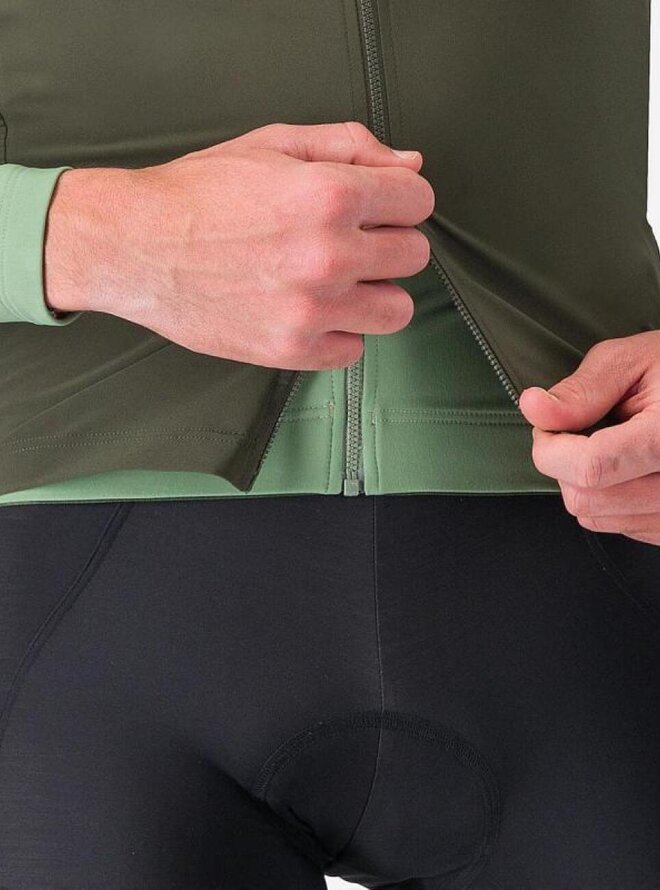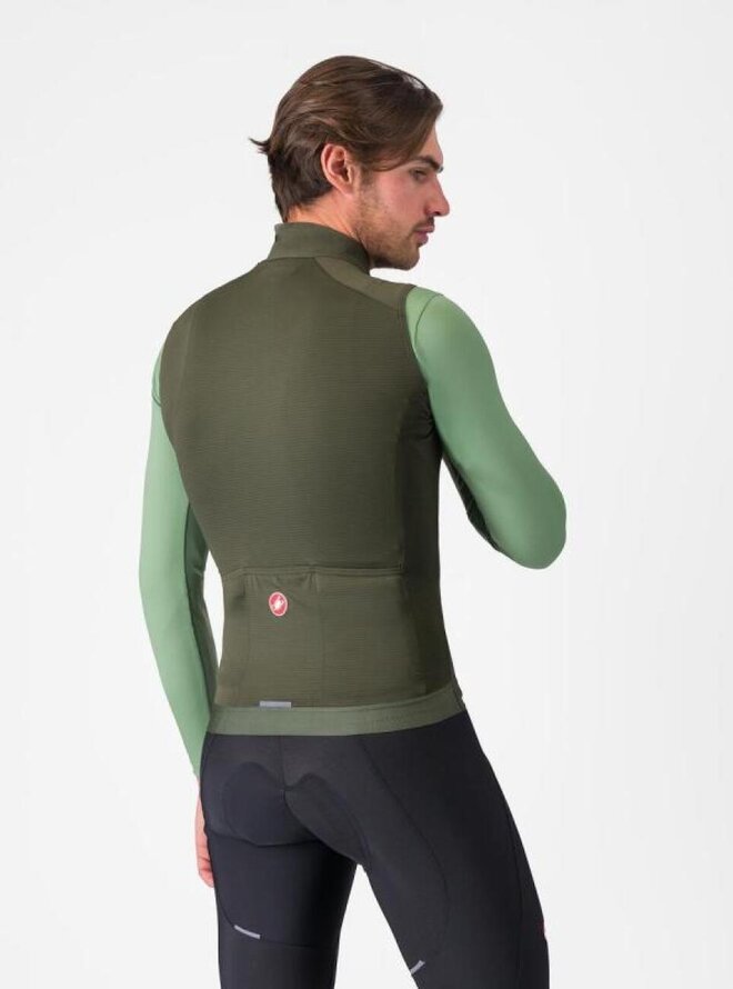 Vesta Espresso je vytvořen jako skvělý doplněk k vaší oblíbené sadě na espresso. Nejen, že skvěle vypadá, ale má také všechny funkce, které byste očekávali. Elastická tkanina předního dílu chrání před větrem, ale umožňuje dostatek vzduchu, abyste byli větraní a v suchu. Na zádovou část používáme stejný materiál jako na dres Espresso, elastický a pohodlný, aby vesta seděla na těle tak akorát. Má 3 kapsy, abyste měli vše potřebné po ruce, aniž byste museli sahat do dresu. Pokud byste ještě něco potřebovali z kapsy dresu, přední zip lze rozepnout v obou směrech, což usnadňuje přístup a termoregulaci při jízdě. Elastický pas drží vestu na místě a přidali jsme reflexní proužek pro lepší viditelnost. Veškerou tuto sílu můžete sbalit do kapsy a mít ji kdykoli po ruce.