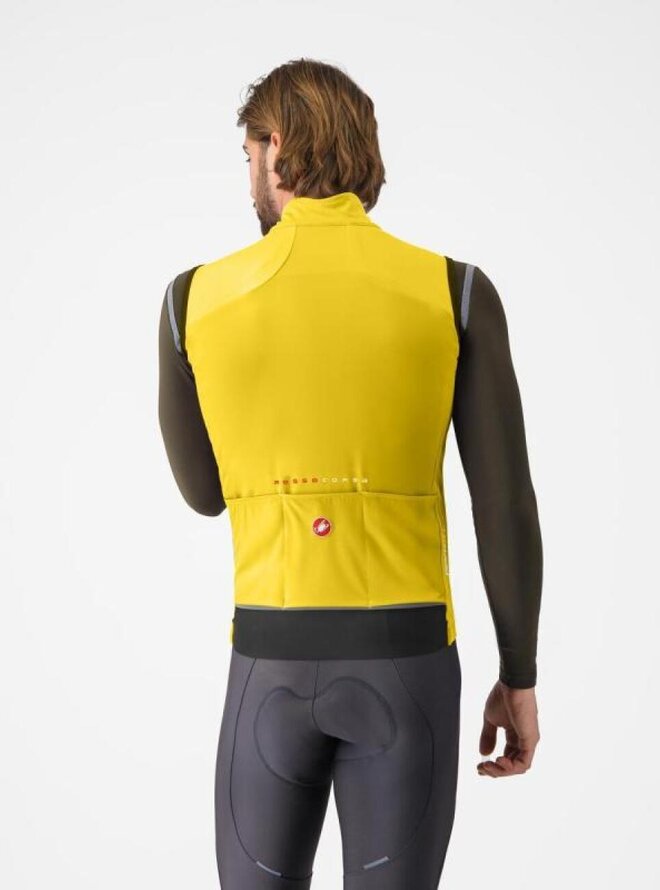 Technologie materiálu Castelli Ristretto ji činí tak všestrannou. Materiál je navržen s prodyšností, takže je větruodolný, ale propouští velmi málo vzduchu, což pomáhá odvádět více potu a udržuje vás v suchu. Přední část je vyrobena ze středně těžké verze materiálu Ristretto, zatímco zadní část je vyrobena z elastické tkaniny pro ještě větší prodyšnost. Zůstanete v suchu, což znamená, že se udržíte v teple i s tenčí vestou.