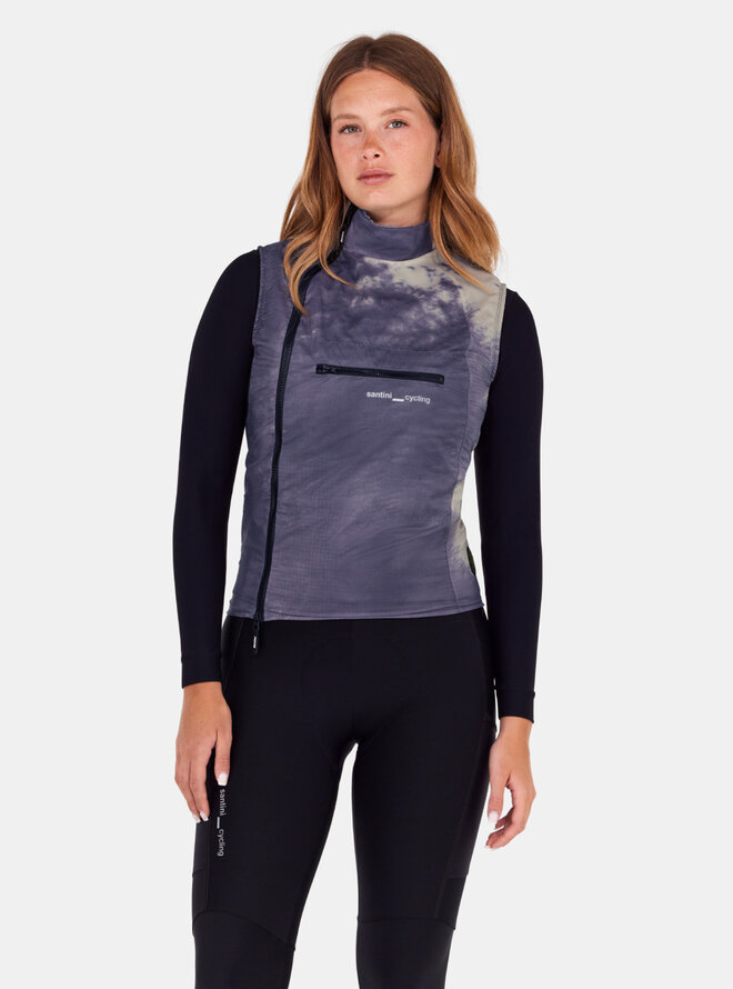 SANTINI Alpha Insulatedje inovativní unisex vesta pro náročné cyklisty, kteří hledají spolehlivou ochranu v přechodném počasí bez omezení svobody pohybu. Vnější vrstva z lehké tkaniny odolné proti větru a chladu chrání před větrem a chladem, zatímco vnitřní izolace Polartec® Alpha™ s vlnou Merino udržuje tepelný komfort bez přehřívání nebo nadměrného objemu.