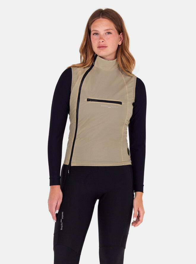 SANTINI Alpha Insulatedje inovativní unisex vesta pro náročné cyklisty, kteří hledají spolehlivou ochranu v přechodném počasí bez omezení svobody pohybu. Vnější vrstva z lehké tkaniny odolné proti větru a chladu chrání před větrem a chladem, zatímco vnitřní izolace Polartec® Alpha™ s vlnou Merino udržuje tepelný komfort bez přehřívání nebo nadměrného objemu.