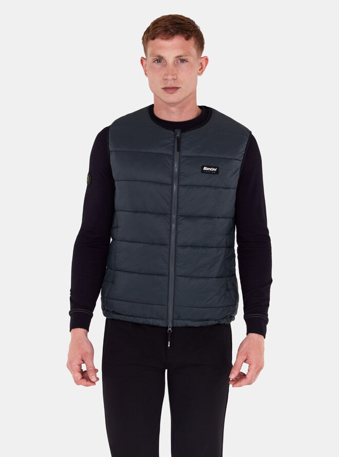 Nová unisex vesta SANTINI Puff harmonicky kombinuje teplo, ochranu proti větru a voděodolnost. Je izolována vycpávkou PrimaLoft® Gold Insulation Eco o gramáži 60 g/m², ultra lehkým a vysoce stlačitelným materiálem vyrobeným ze 100% recyklovaného polyesteru. Tato inovativní izolace využívá technologii P.U.R.E.™, která pomáhá snižovat emise CO2 při výrobě syntetické izolace. Podšívka i vnější materiál jsou také vyrobeny ze 100% recyklovaného polyesteru. Vesta má vodoodpudivou úpravu pro zlepšení voděodolnosti při zachování vysoké úrovně prodyšnosti. Schopnost peří snadno se stlačit do balíčku a rozpínat zpět do původní velikosti činí tuto vestu vhodnou pro každodenní dojíždění nebo městský život. Ideální k nošení samostatně nebo pod další bundou jako vrstva.