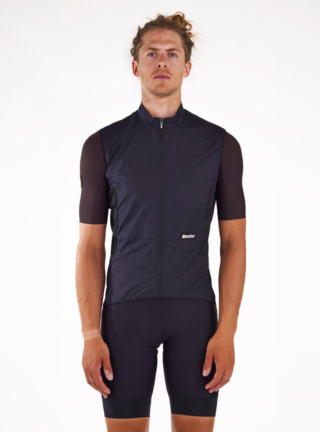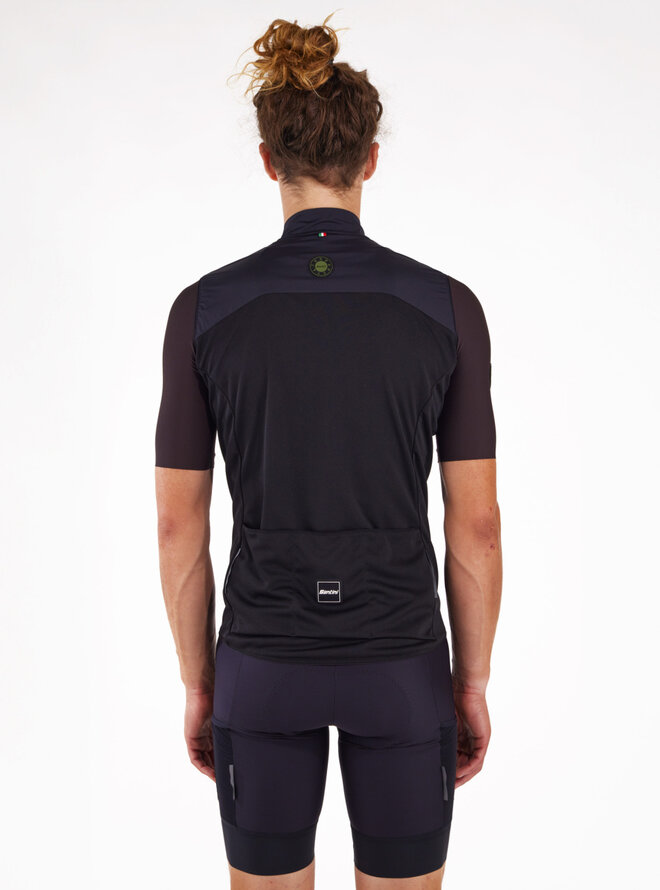 SANTINI Trail je revoluční vesta, která je ideální pro cyklistiku, ale i pro další outdoorové aktivity. Vnější vrstva z ultralehké tkaniny uvnitř obohacená o materiál Polartec® Alpha® Direct s Merino vlnou zajišťuje prodyšnost a zároveň termoregulaci a pohodlí. Model odolává vlhkosti a neuvěřitelně rychle schne. Díky reflexním detailům a ergonomickému střihu je vesta univerzální a mimořádně pohodlná.