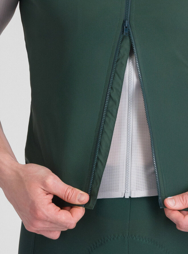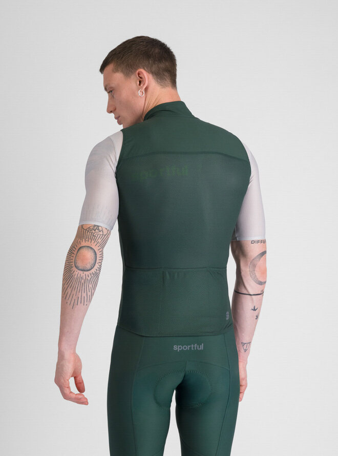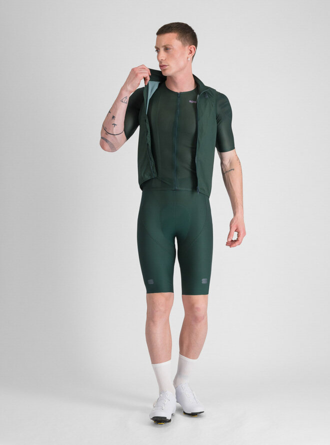 Sportful PRO 2 vesta Oblivion Green je výkonnostní cyklistická vesta navržená pro náročné jezdce. Kombinuje aerodynamický střih, pohodlí a ochranu proti větru. Moderní zelená barva "Oblivion Green" dodává sportovnímu outfitu svěží a dynamický vzhled.