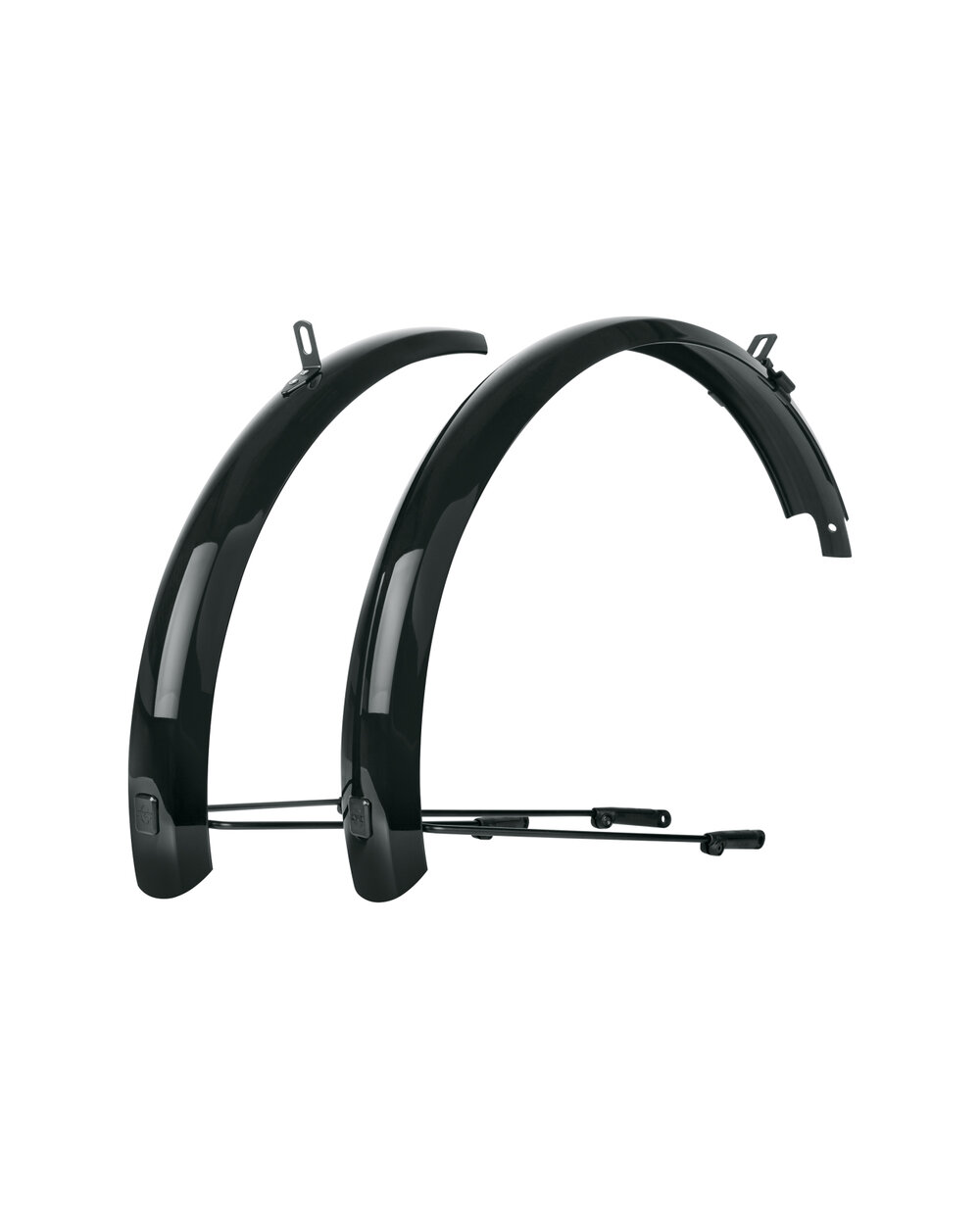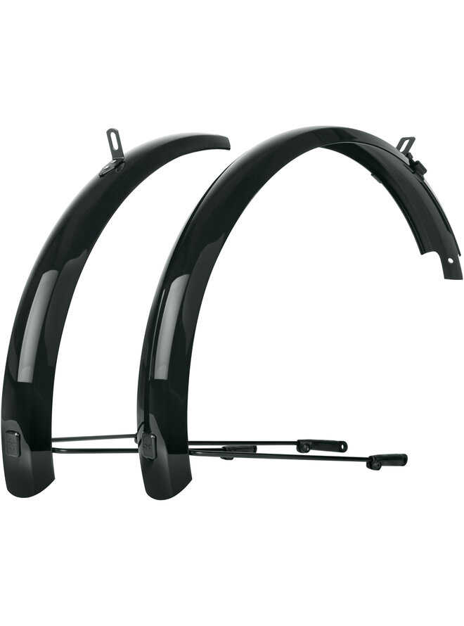 SKS Bluemels Basic je sada blatníků z robustní sendvičové konstrukce. Lesklý design dokáže zaujmout, spolehlivě ochrání před nečistotami a stříkající vodou. Díky flexibilní sendvičové konstrukci, ve které jsou ultrajemné hliníkové lišty zapuštěny do plastového povlaku, jsou blatníky extrémně robustní, tuhé a odolné vůči korozi. Slouží jako vynikající ochrana díky montáži v blízkosti krytu. Ať už na polních nebo lesních cestách, blatníky BLUEMELS Basic nabízejí vynikající všestrannou ochranu. Bezpečnostní systém ESC odpojí vzpěry v případě zachycení větví mezi paprsky kola, aby se kolo nemohlo zaseknout.