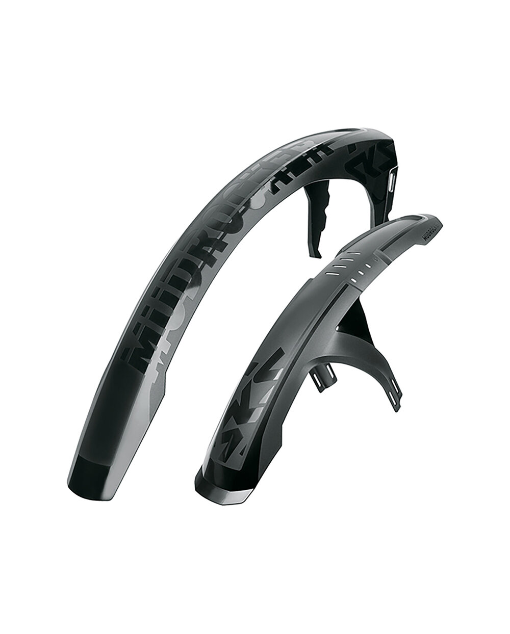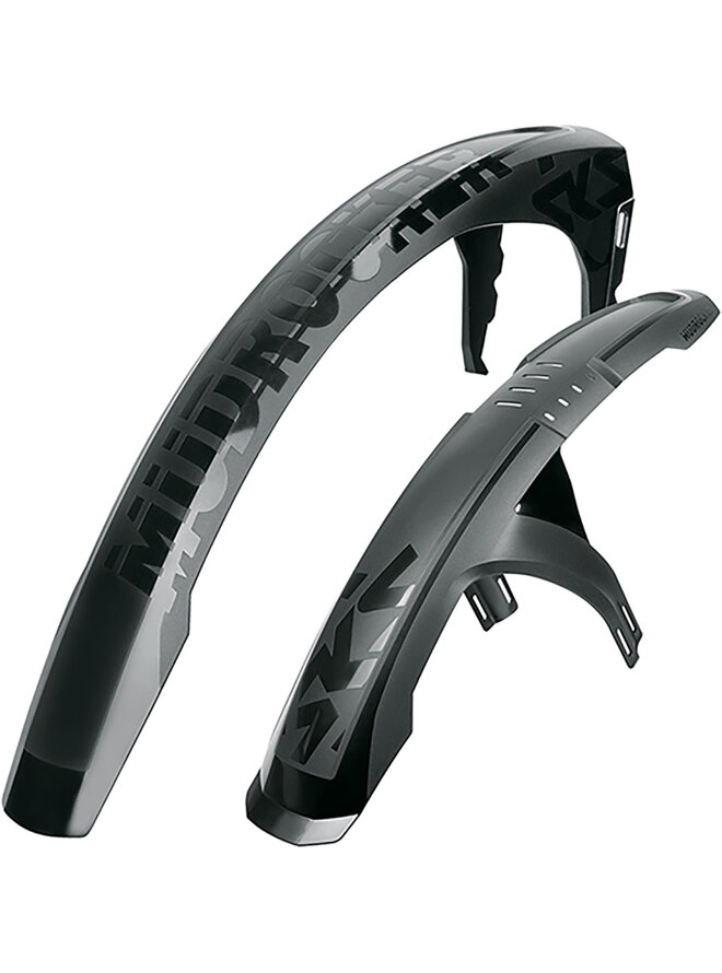 Nepřekonatelná sada: Přední a zadní blatníky Mudrocker jsou dokonale integrovány do horského kola, takže rám a blatníky působí jako jeden celek. MUDROCKER SET je vhodný i pro celoodpružená kola a horská kola se vzpěrami Vario. Zadní blatník je uchycen ke vzpěrám zadní stavby pomocí pogumovaných pásků na suchý zip. Další ochranu zajišťuje nástavec, který lze volitelně zasunout směrem k sedlové trubce, a nástavec v podobě přídavného adaptéru.