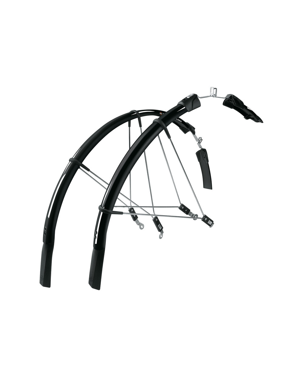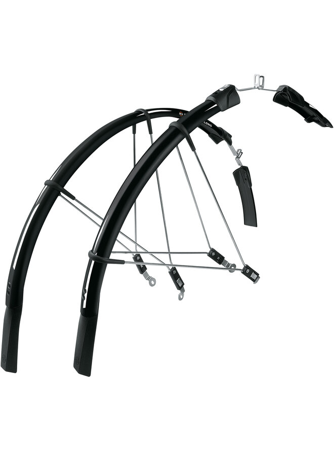 SKS Raceblade Long jsou extra dlouhé blatníky pro silniční kola, ideální do deštivého počasí nebo zimního tréninku. Konec každého blatníku zasahuje pod náboj. Tato délka zaručuje plné krytí, což znamená, že jste vy i cyklista za vámi chráněni před stříkající vodou. Lze je dokonale přizpůsobit poloměru kola nastavením délky držáků. Jakmile jsou kovové montážní držáky připevněny ke kolu, blatníky lze během několika sekund připnout nebo vypnout, což je ideální v případě potřeby. Držáky jsou připevněny k brzdovým šroubům a k rychloupínáku.