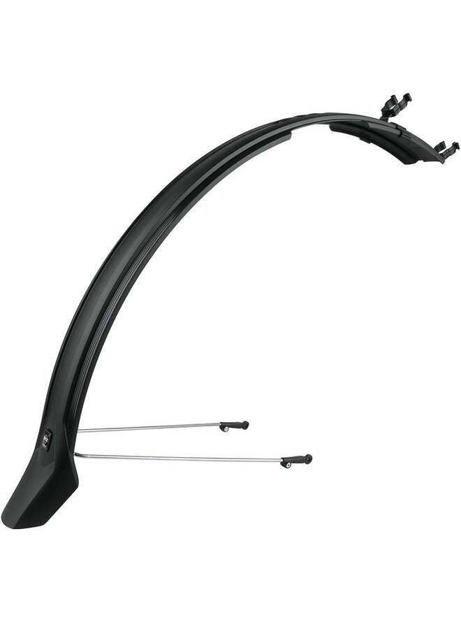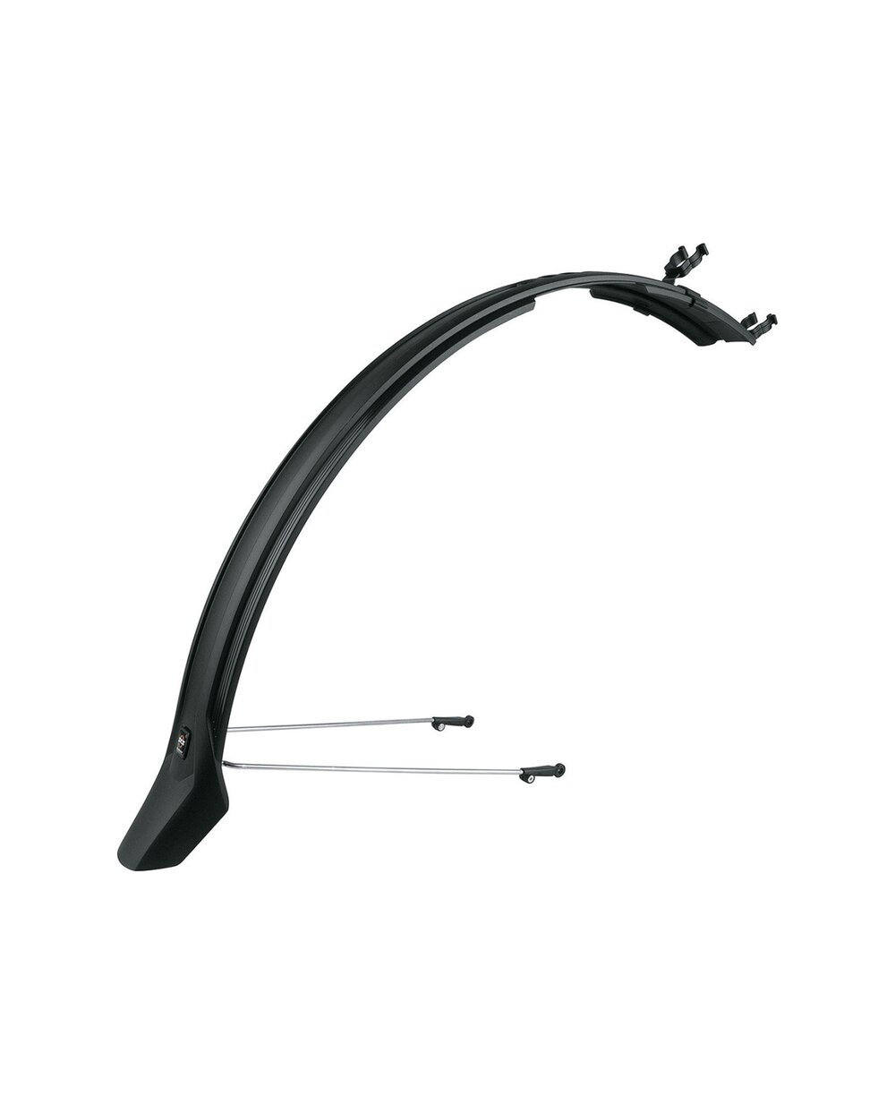 Zadní plastový blatník SKS Velo65 Mountain je určen pro horská kola s velikostí kol 26-29". Díky vzpěrám z nerezové oceli a univerzálnímu upevnění pomocí klipů je instalace rychlá a snadná. Blatník kombinuje praktickou funkčnost s moderním sportovním vzhledem a šířkou 65 mm, což zajišťuje spolehlivou ochranu před nečistotami.