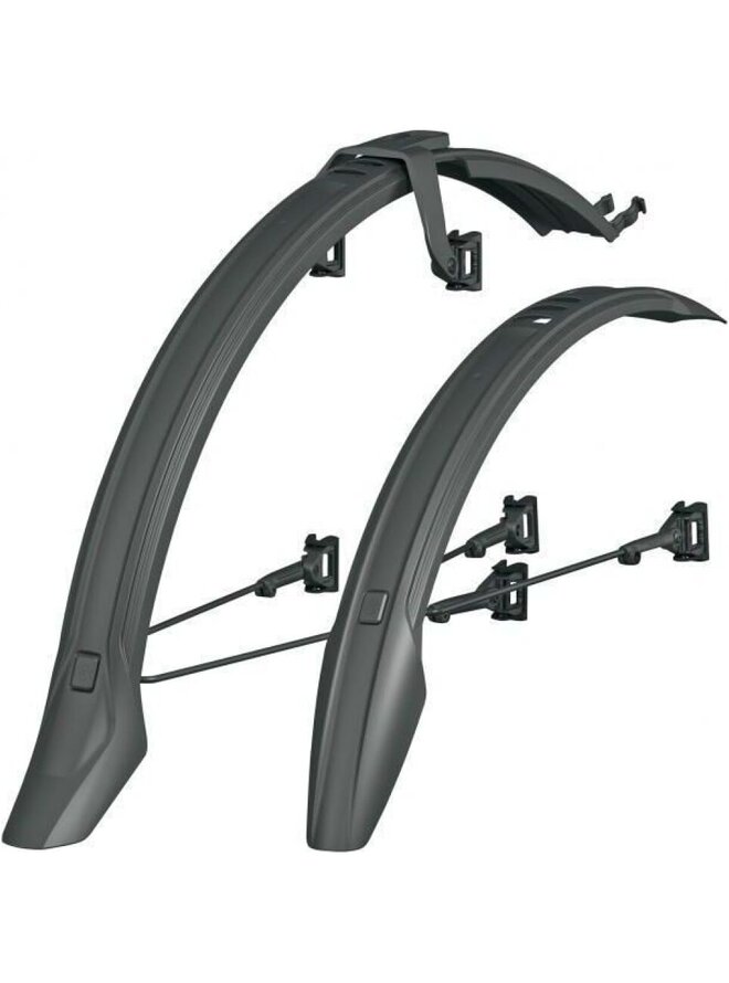 Sada univerzálních blatníků, které lze upnout na rámy kol bez montážních držáků pro blatníky. V nabídce je stále více kol bez úchytů na blatníky. Nová sada blatníků VELOFLEXX tento problém řeší. Není potřeba žádné nářadí a montáž je velmi jednoduchá a rychlá. Blatníky se připevňují k rámu a vidlici pomocí univerzálního adaptéru na rám a gumiček nebo pásku na suchý zip.