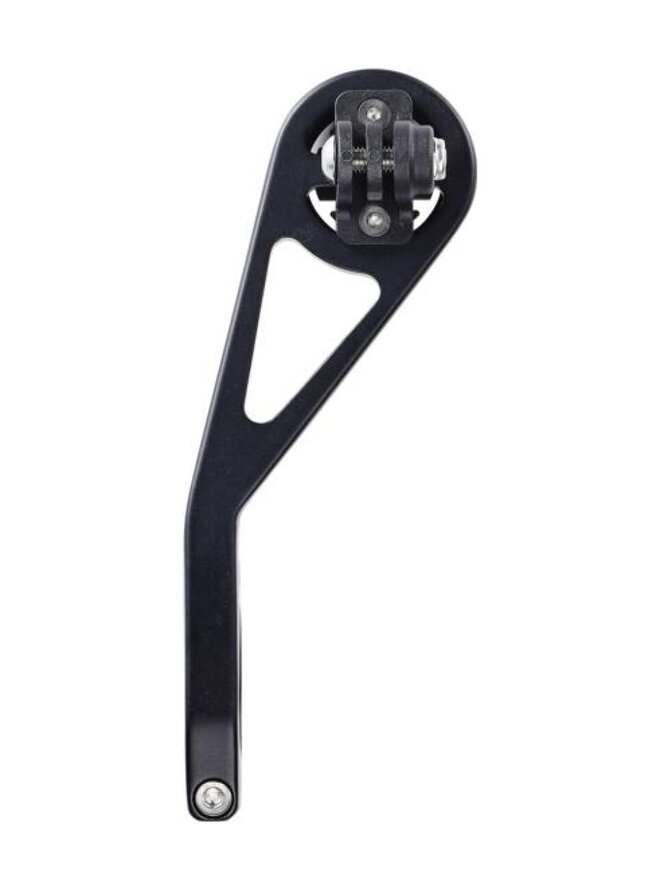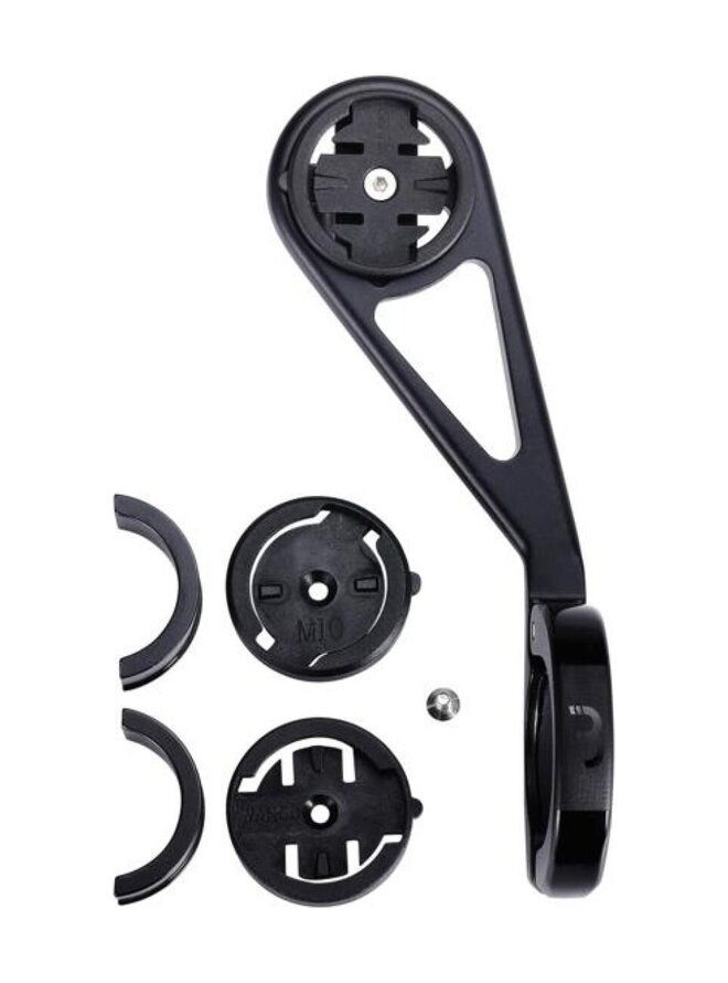 Lehký hliníkový držák z materiálu 6061 T6 obráběný CNC, kompatibilní s cyklocomputery. Snadná montáž na řídítka 25,4/31,8 mm. Vhodný pro všechny cyklocomputery Garmin quartermount, Mio a Wahoo. Držák pro GoPro je umístěn na spodní straně. Hmotnost (g): 62. Výška x šířka x délka (mm): 40 x 55 x 140. .Detaily