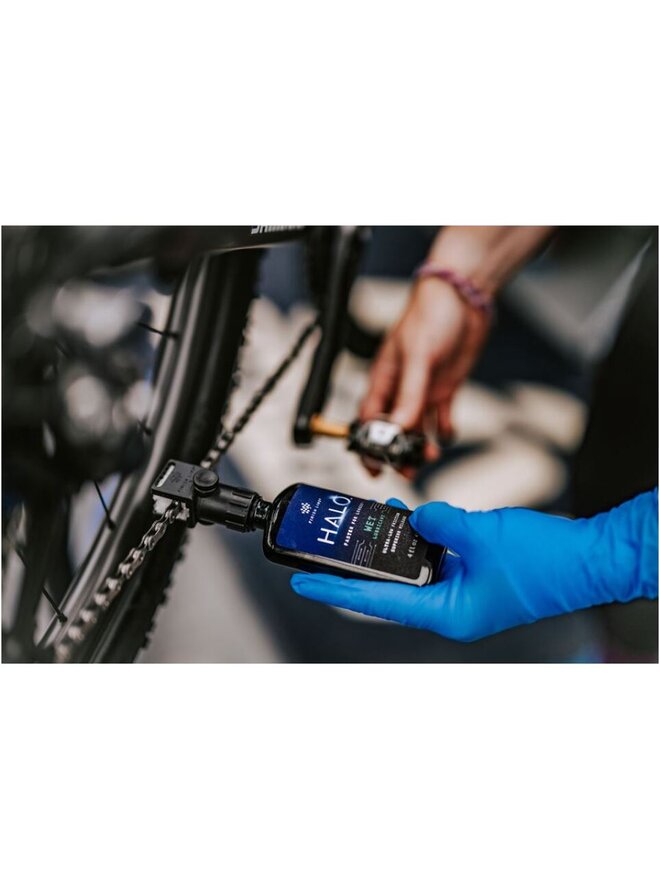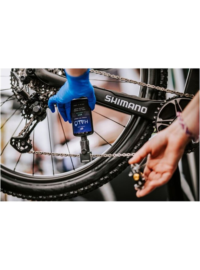 HALO Wet-Film je navržen pro bezkonkurenční výkon celého hnacího ústrojí, dlouhou životnost a voděodolnost namazaného řetězu i ve velmi náročných mokrých podmínkách. HALO Wet-Film tvoří pokročilé technologie: wolframové částice a nepřilnavý keramický potah. Výsledkem je nejrychlejší, nejčistší a nejtrvanlivější mazivo ve své kategorii. Vyzkoušejte nejrychlejší mazání i na zablácené trati! BALENÍ kapátko 120 mlDetaily