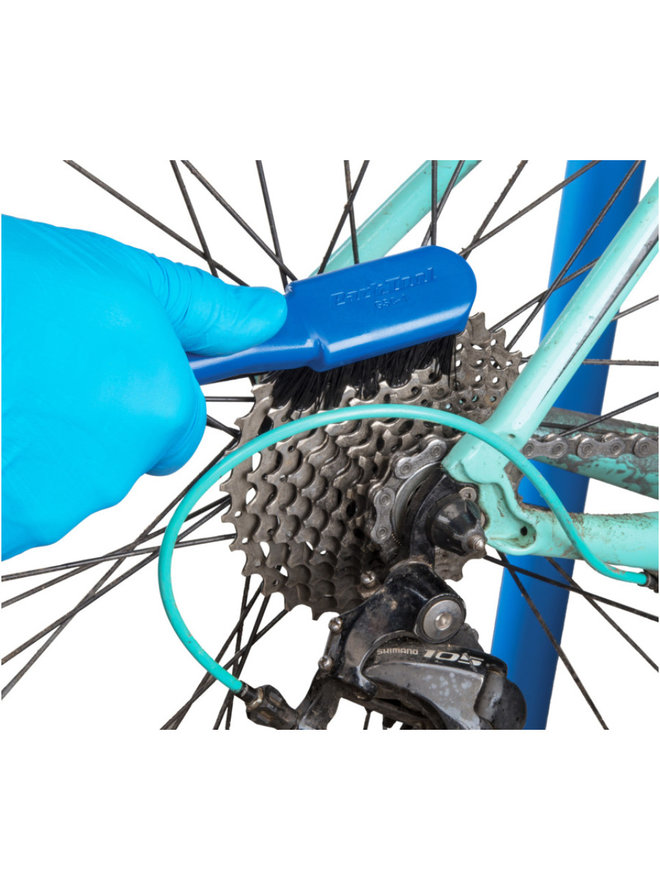 Kartáček s robustní rukojetí a zajímavě tvarovanými nylonovými štětinami. Ideální pro čištění pastorků, převodů a pneumatik. Celková délka 17 cm.