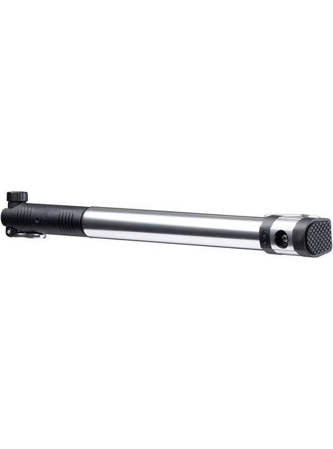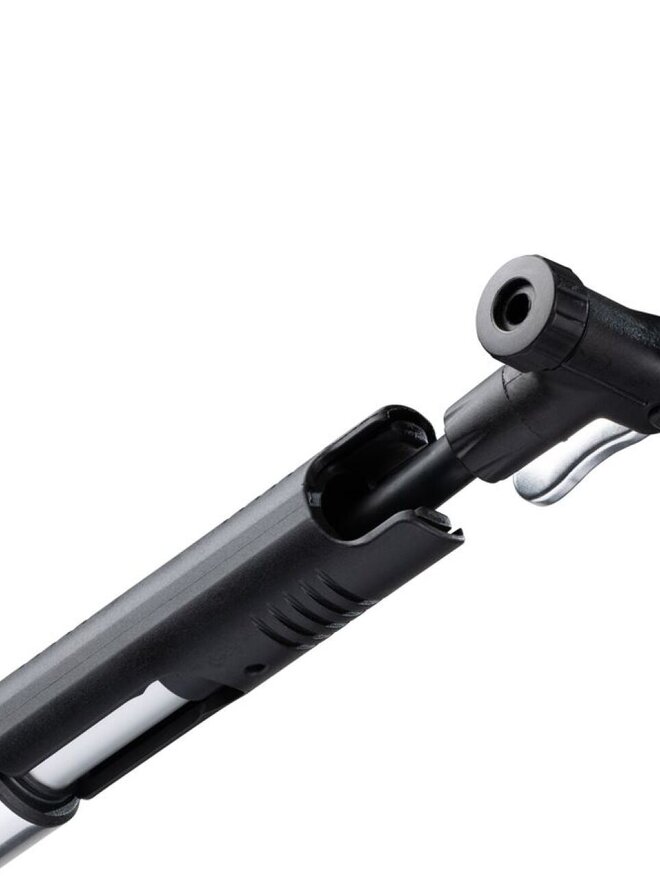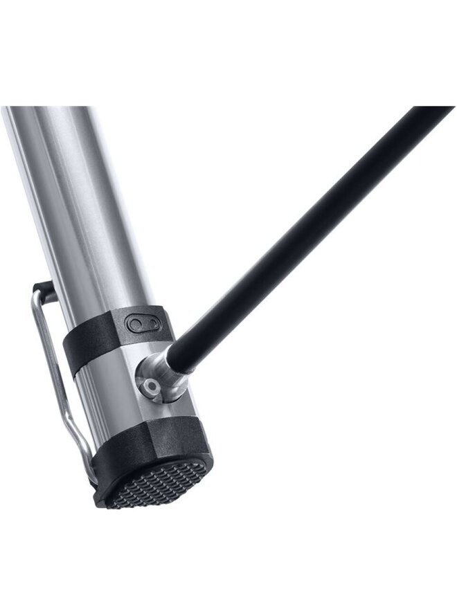 Unikátní lehká minipumpa, která se pohodlně vejde do batohu a se kterou hravě nafouknete kolo i na trailu. Pumpa je totiž vybavena pogumovanou základnou, vyklápěcím nožním stojánkem pro skvělou stabilitu během dofukování, skládací rukojetí, skrytou hadičkou uvnitř těla a patentovanou magnetickou hlavicí na oba typy ventilků. Váha 171g Délka 325mm Maximální tlak 110 psi/7,5 bar Držák na rám není součástí balení.Detaily