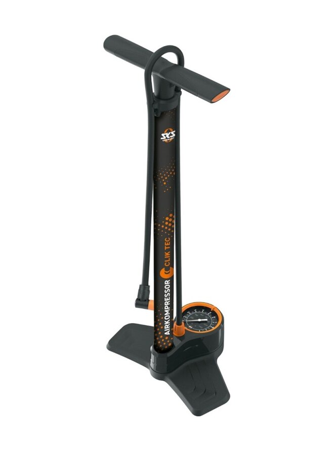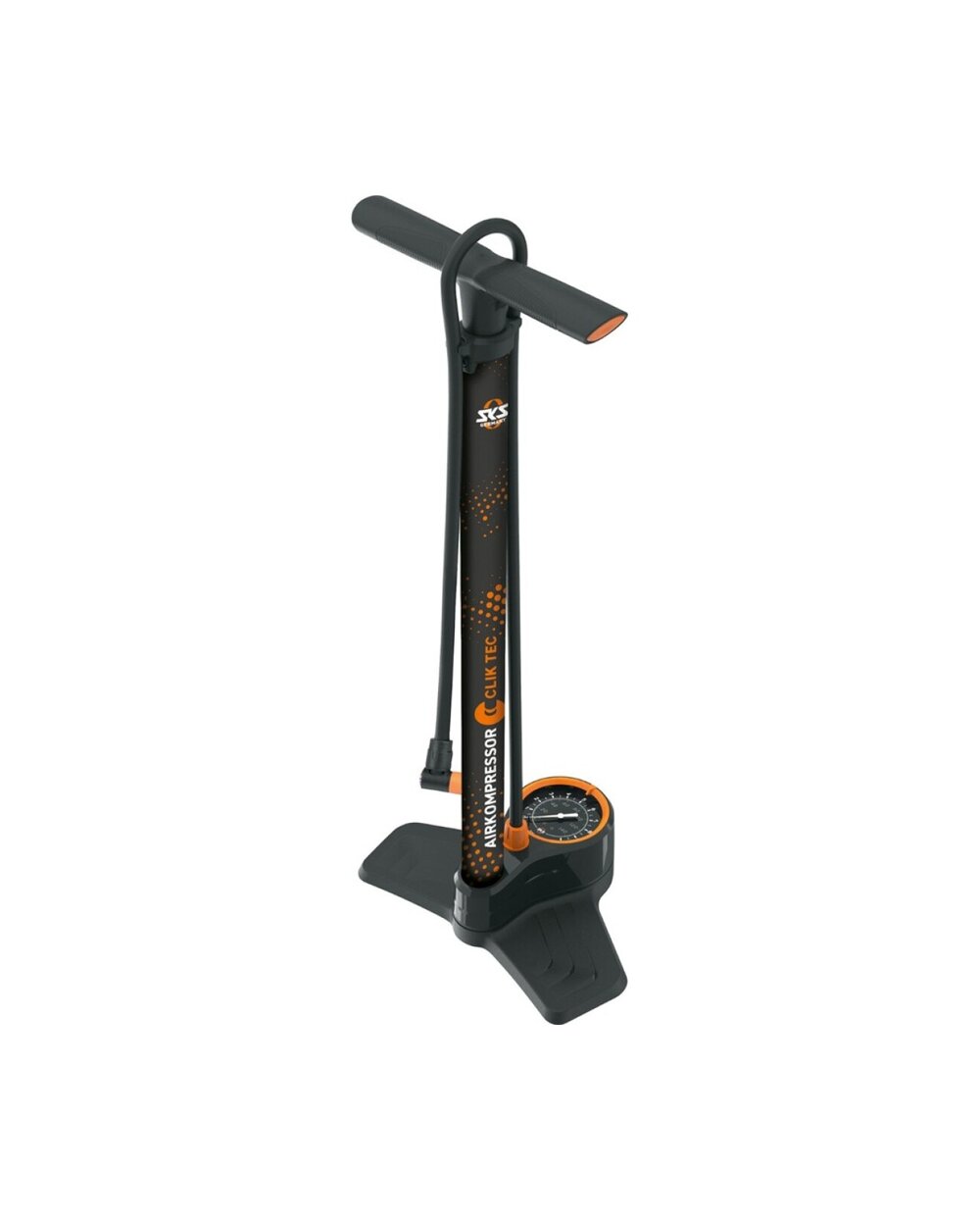 SKS Airkompressor Clik Tec 10.0 je vysoce kvalitní podlahová pumpa určená pro cyklisty. Má robustní ocelovou trubku, stabilní plastovou základnu, velký analogový manometr pro přesné měření tlaku a dlouhou vysokotlakou hadici, díky níž je pumpování pohodlné a efektivní.Detaily