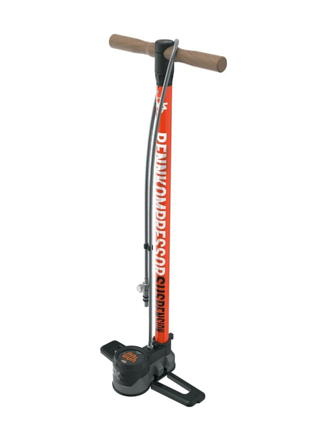 Rennkompressor Suspension zaručuje maximální výkon při nastavování tlaku vzduchu v odpružení a pružinových prvcích. Verze Suspension osvědčeného modelu Rennkompressor NXT osloví profesionální mechaniky i ambiciózní domácí nadšence. S tlakem až 400PSI poskytuje vynikající přítlak pro tlumiče a odpružené vidlice, zatímco digitální vysokotlaký manometr zaručuje nejvyšší přesnost měření. Pro přesné ladění lze tlak vzduchu nastavit pomocí šroubu s drážkou. Spojení s ventilem Schrader s dvoustupňovým šroubovým upevněním zabraňuje úniku tlaku při připojování a odpojování a zajišťuje bezpečnou manipulaci. Čerpadlo má dlouhou, pogumovanou hadici s ocelovým opletem. Je poutavé a přitom stabilní: vysokotlaké hadicové čerpadlo s charakteristickou červenou kovovou trubkou je snadno rozpoznatelné a protiskluzová základna z tlakově litého hliníku zajišťuje stabilitu. Extra dlouhá pogumovaná hadice s ocelovým opletem poskytuje dostatek volnosti pohybu, zvláště když je kolo zavěšeno na stojanu. Zvláště praktické jsou skládací nohy a odnímatelné dřevěné madlo, které umožňují ekonomické uskladnění čerpadla v dílně.Detaily