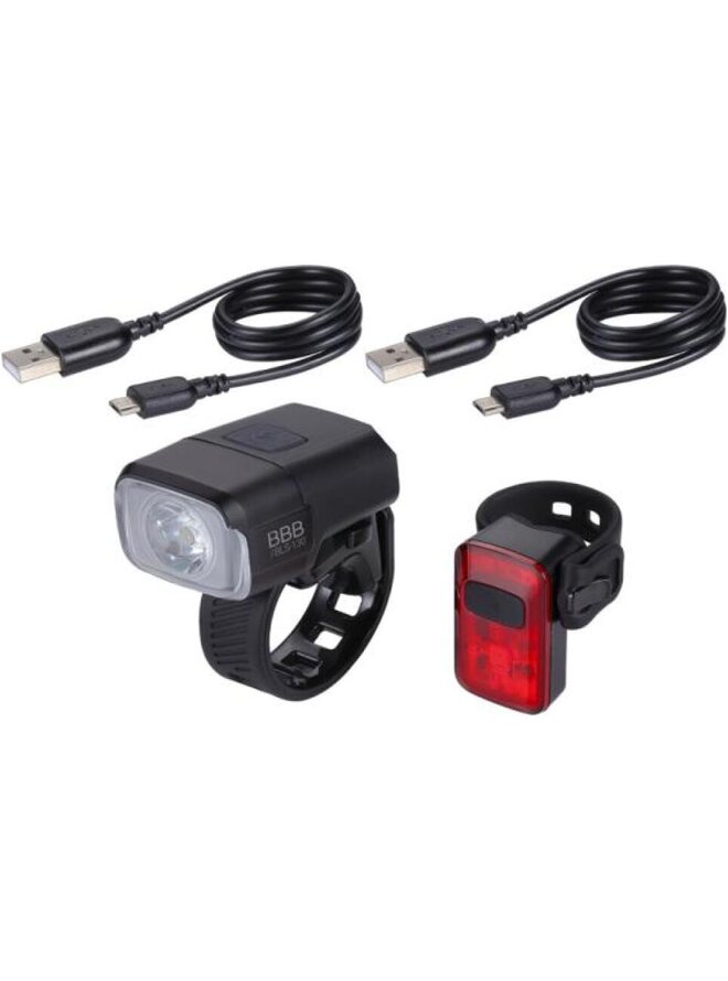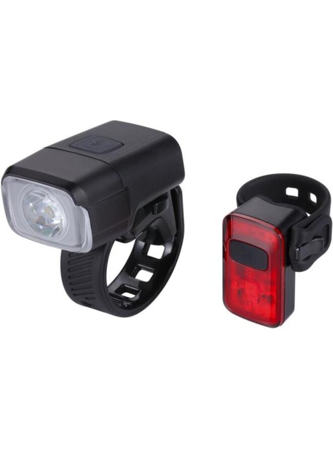 Sada obsahuje přední světlo NanoStrike 400 BLS-130 a zadní světlo Spark.
