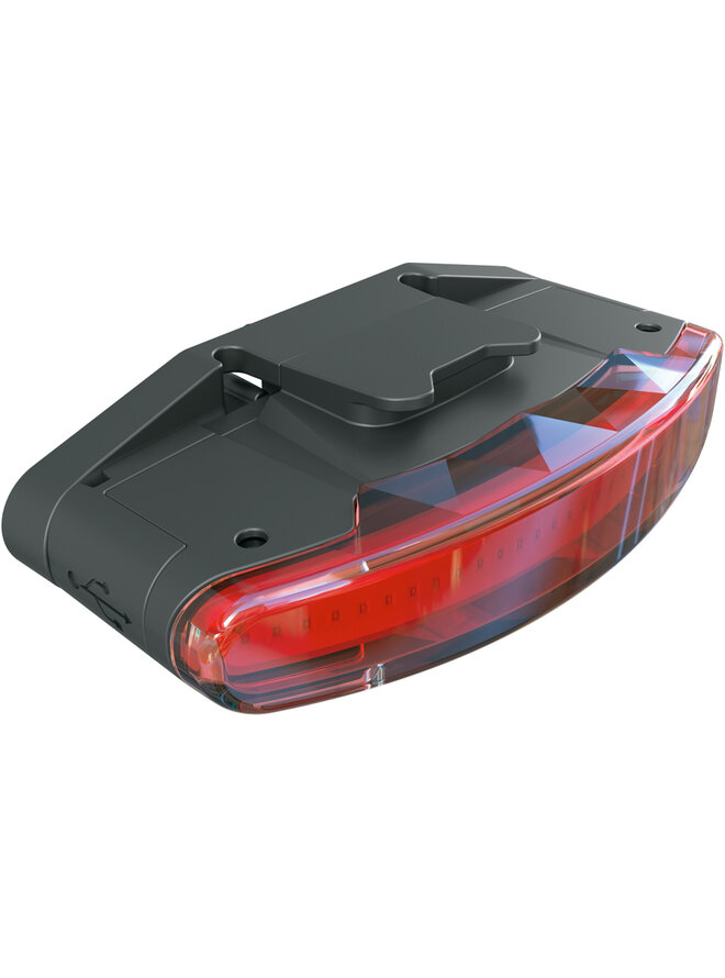 Koncové světlo INFINITY UNIVERSAL s integrovanou baterií lze dobíjet přes USB připojení. Zadní světlo je vybaveno bezpečnostním spínačem a indikátorem nabití baterie. Výdrž baterie je až pět hodin. Se schválením podle německého zákona o silničním provozu (StVZO).