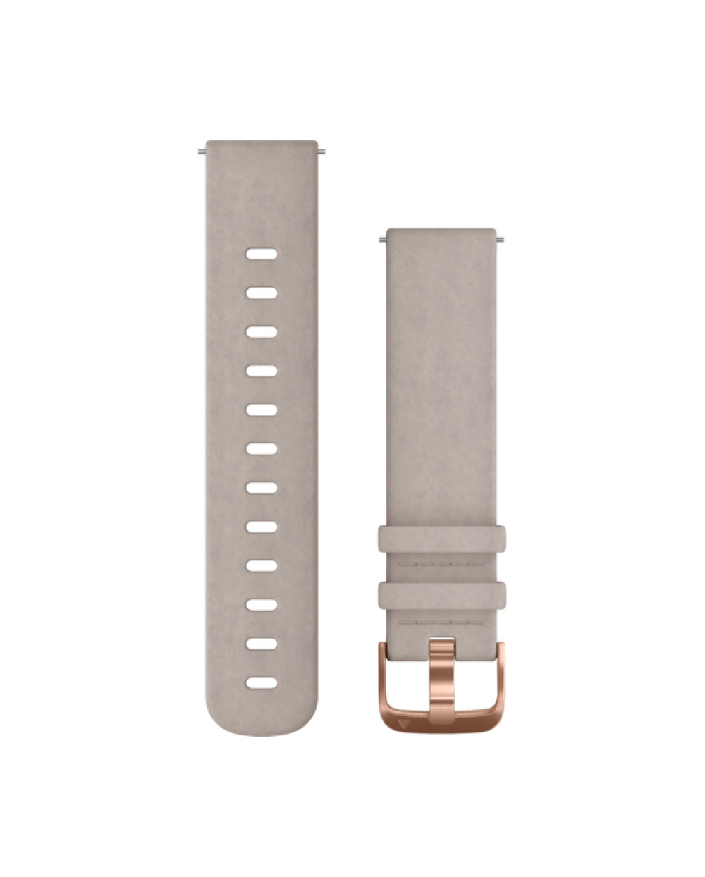 Šedý semišový řemínek s rychlou a snadnou výměnou.