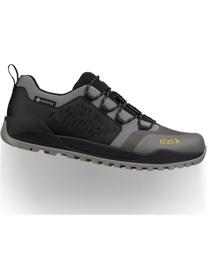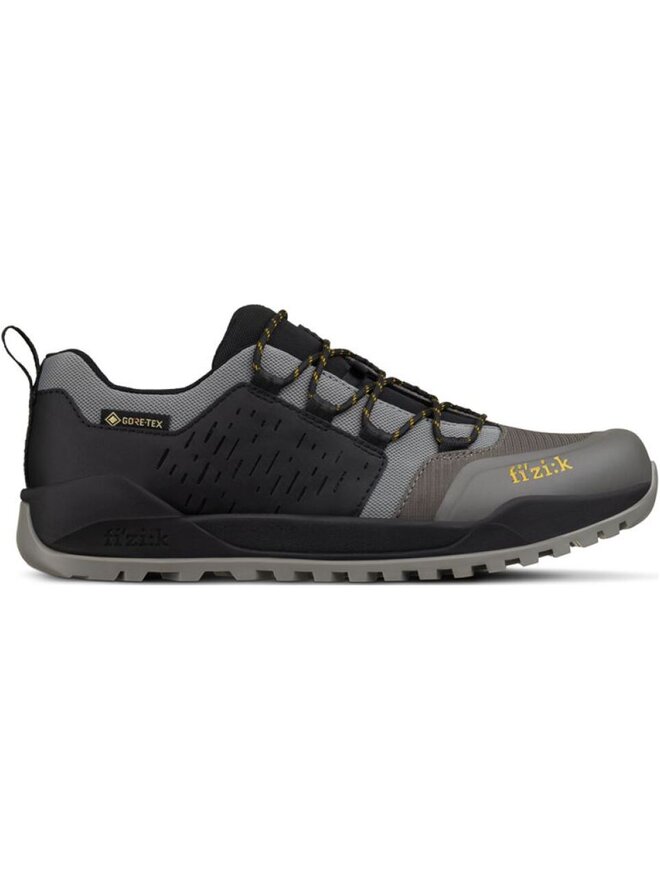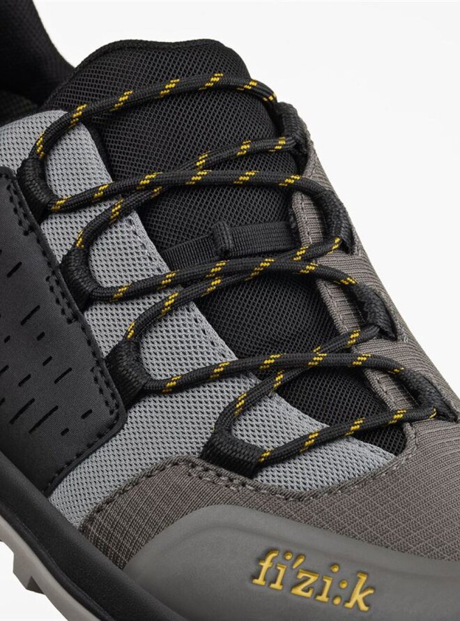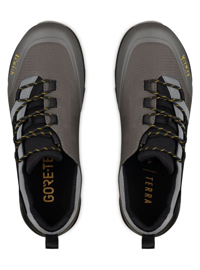 Goretexová verze oblíbených univerzálních treter Fizik do náročnějších podmínek. GORE-TEX membrána je voděodolná a zároveň prodyšná s odolnou tkaninou na povrchu. Terra Ergolace X2 jsou tretry pro horské kolo, které zvládnou jak technické ježdění na trailech, tak i kombinaci kola a chůze během nedělního výletu s rodinou. Je to robustní, ve všech směrech funkční, bota, která se navrací ke kořenům cyklistiky - umožňuje zdolávat, objevovat, bavit se. Spolu s jezdcem zvládne všechny druhy terénu, nahoru i dolů z kopce, na kole i mimo něj. Ripstop tkanina s vysokou pevností ochrání tretru od roztržení a rozpárání se a nohu od možného poranění. Podrážka Vibram zajistí spolu s výrazným vzorkem skvělý grip na kole nebo i během chůze, například když budete muset sejít terénní schody nebo si od kola odskočíte na prohlídku zříceniny hradu. Šněrování na vnějším boku tretry spolu s poutkem na tkaničky zvyšuje bezpečnost jízdy a zajistí, že vám tkaničky během jízdy nebudou překážet. Odvětraný jazyk se postará o dostatečnou ventilaci tretry. materiál zesílený Microtex, odolná Ripstop tkanina podrážka X2 Vibram upínací systém tkaničky, jazyk s poutkem na tkaničky vložka fi'zi:k váha 329 g (42,5)Detaily