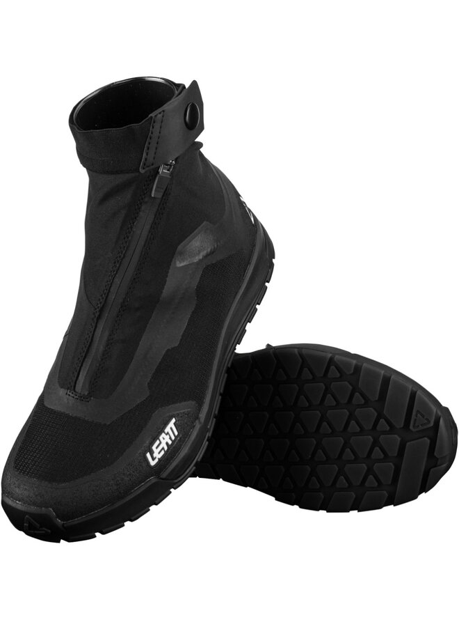 Tato plochá pedálová obuv je vyrobena z boty uvnitř s membránou Leatt Hydradri, která nabízí vodotěsnou ochranu 10 k/10k. Vnější vrstva vodovodního odolného/nečistoty/bahna udržuje většinu vody a bahna od vnitřního systému. Tato bota obsahuje gumovou směs Leatt RideGrip ™ Pro, která je měkčí než standardní guma RIDEGRIP ™. To znamená, že konektivita pedálu je ještě lepší a bota je lépe udržována na kluzkých podmínkách. Vylepšená společnost Wafflegrip Pro Sole je obrácená verze Leatt's Wafflegrip. To umožňuje, aby se kratší kolíky vlepily hluboko do podrážky a poskytovaly velkou trakci mimo kolo, když potřebujete chodit.